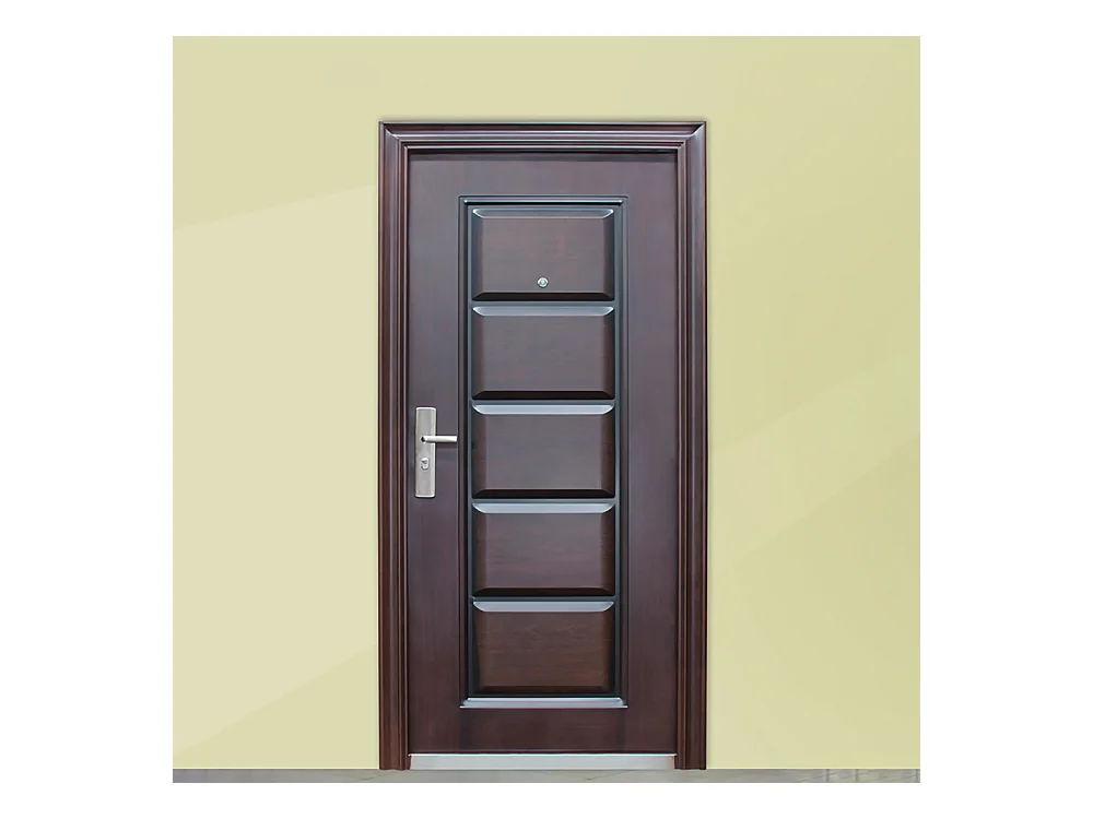 Porta blindata d’ingresso 90x200 marrone con dettagli neri PL60