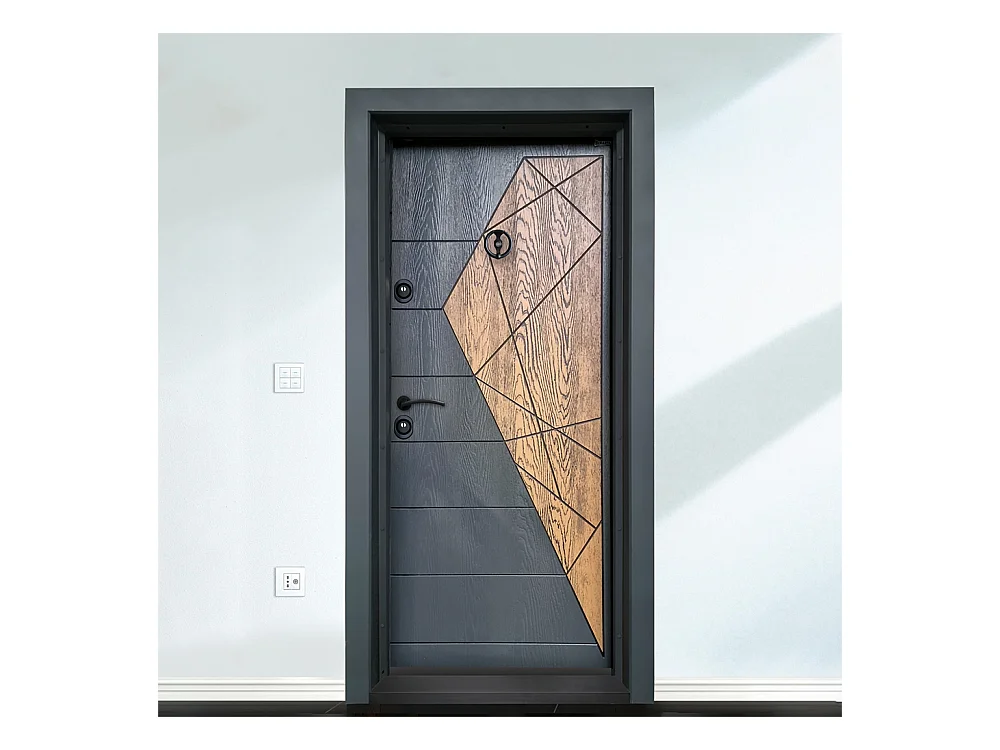 Porta blindata d’ingresso antracite e effetto legno PL47