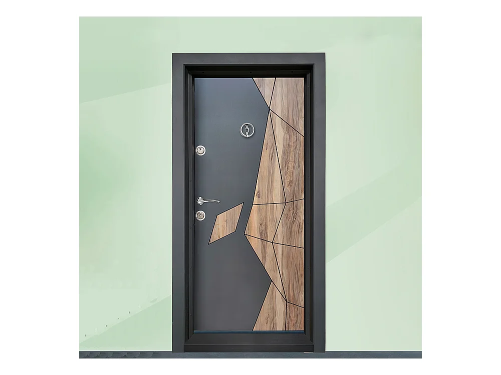 Porta blindata d’ingresso antracite e effetto legno PL47