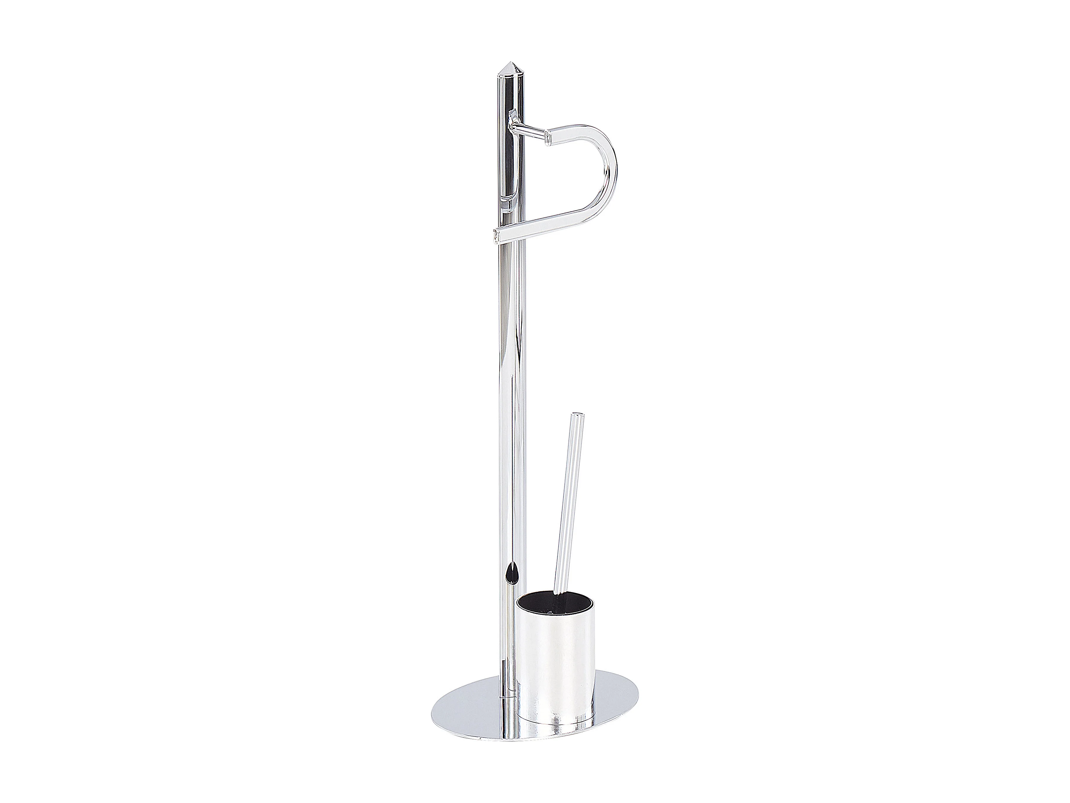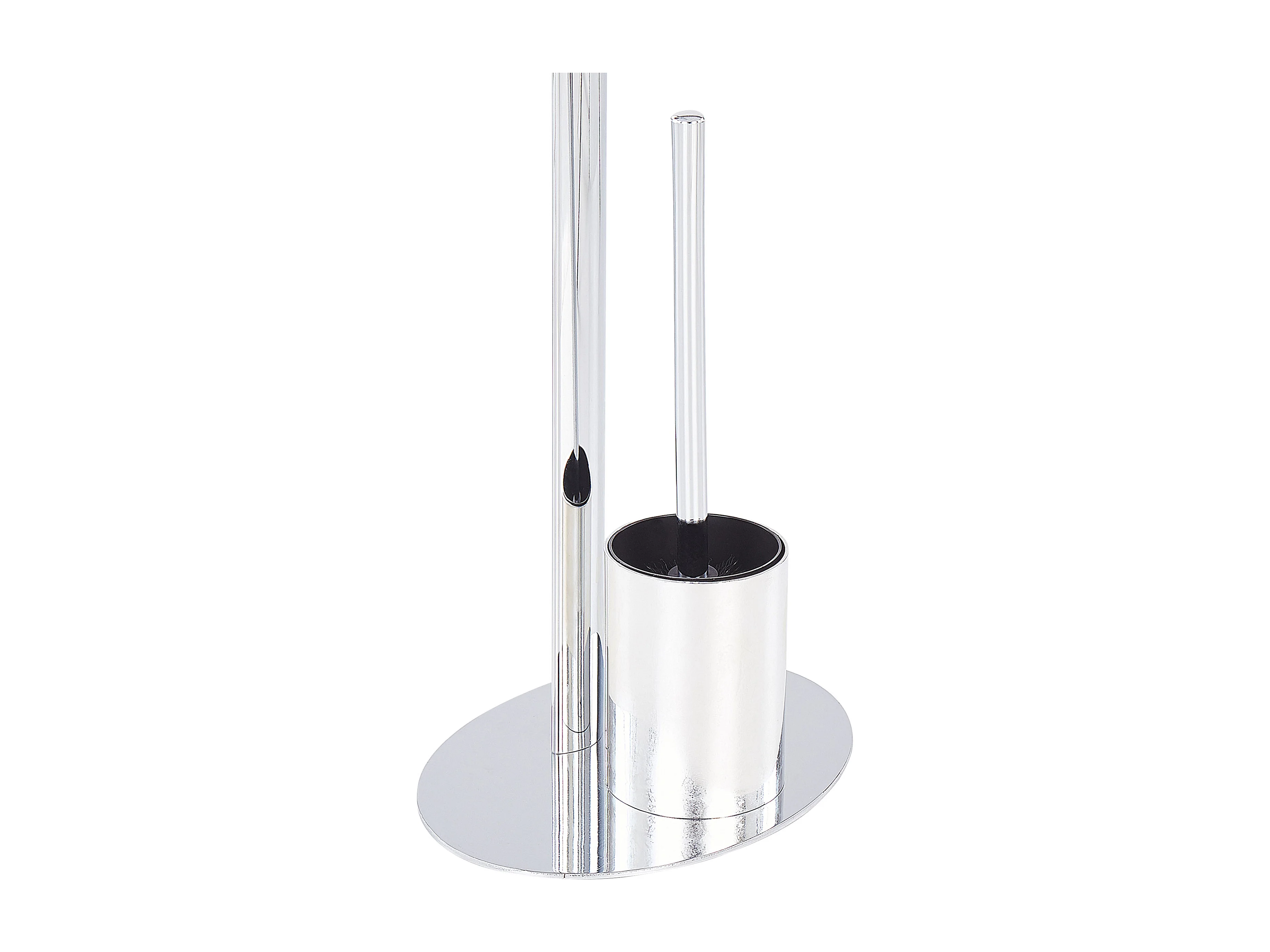 Portarotolo a piantana con portascopino "Tobias" in metallo cromato e basamento ovale