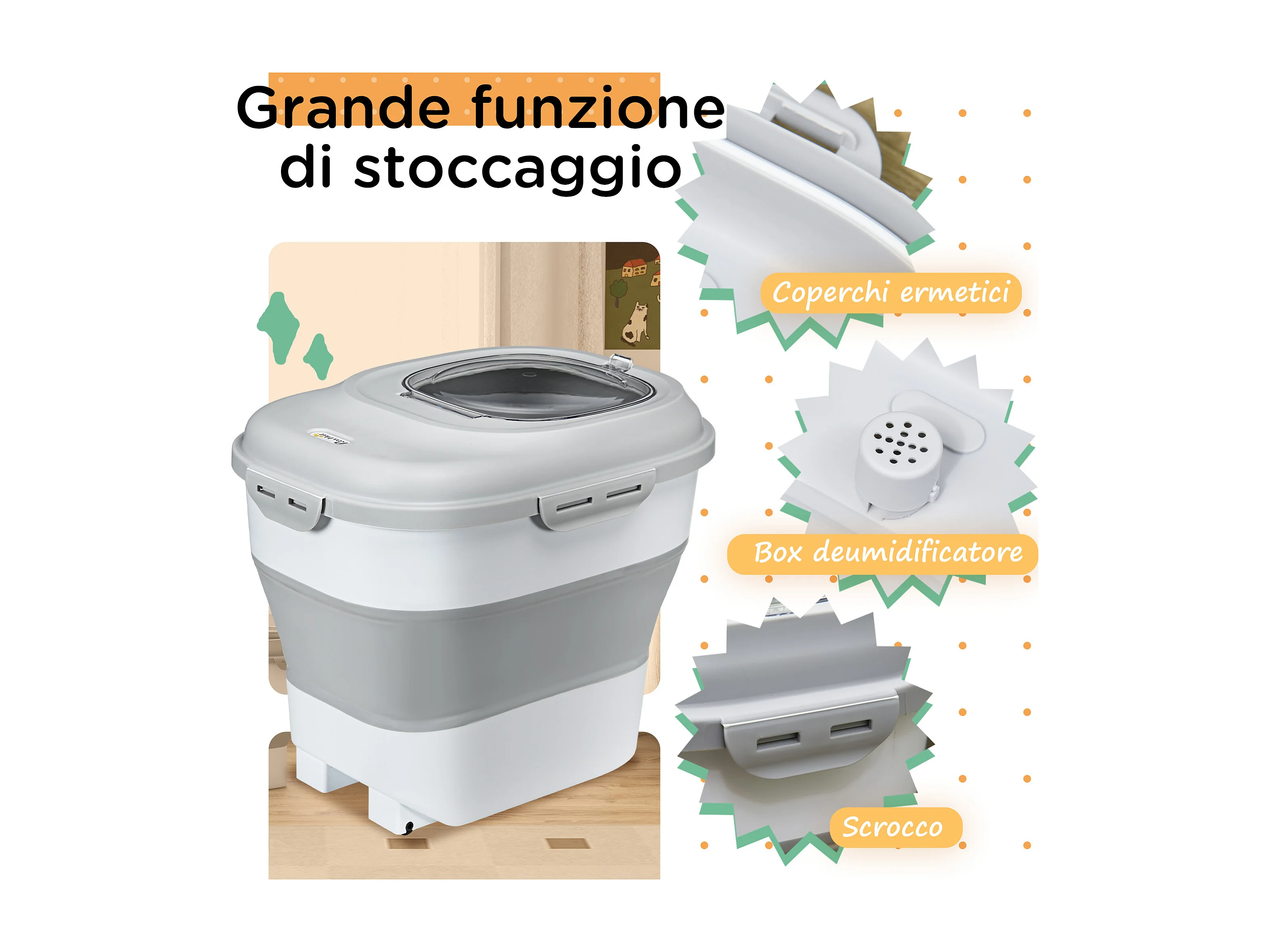 Porta crocchette cani capacità 5-25l con chiusura ermetica grigio