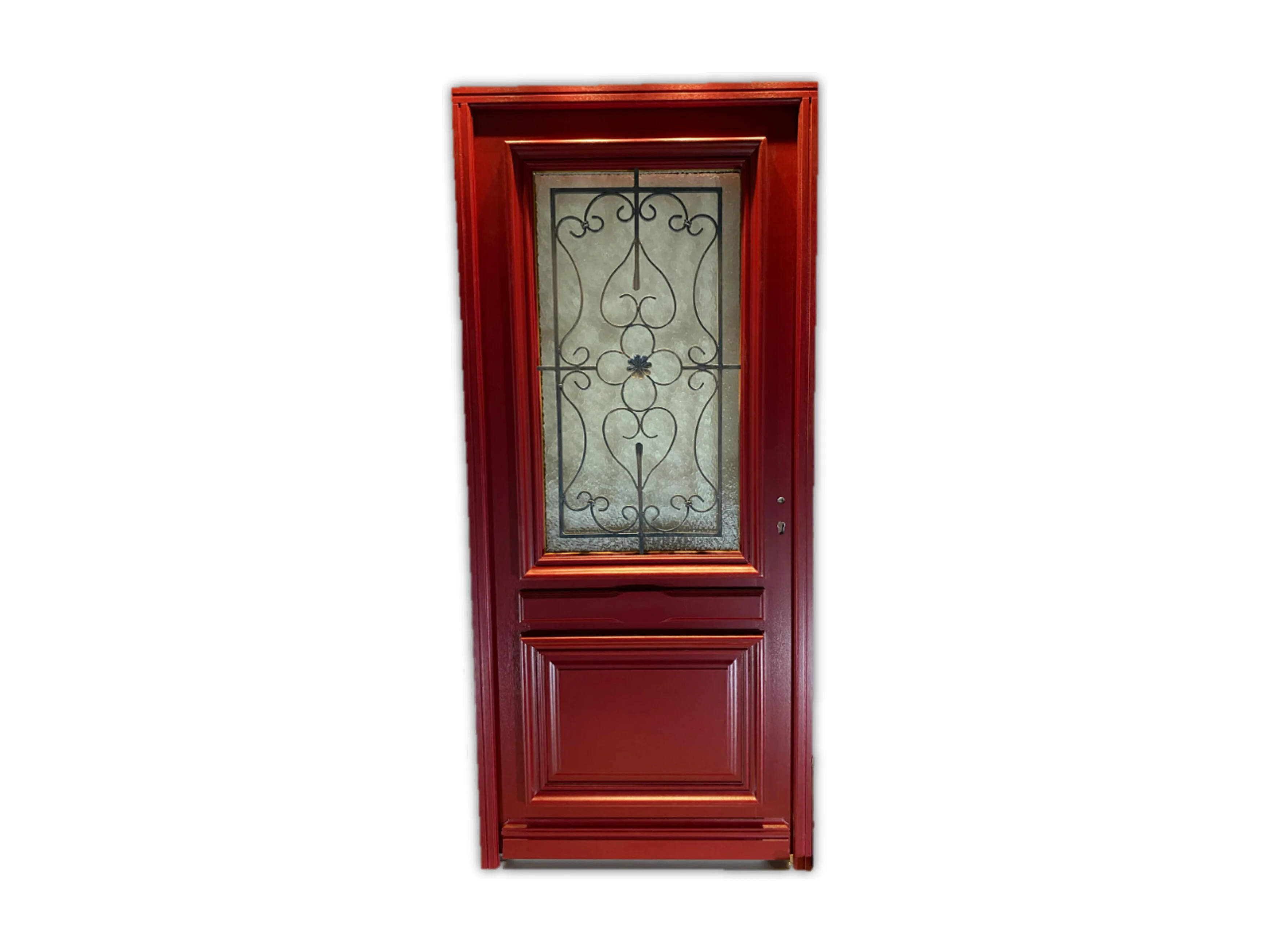 Porta d'ingresso in legno vitreo, Alize RAL 3004, H,215xl,90 p,sinistra + Maniglia e Fusto (010723NO) Dimensioni Tabella senza maniglia