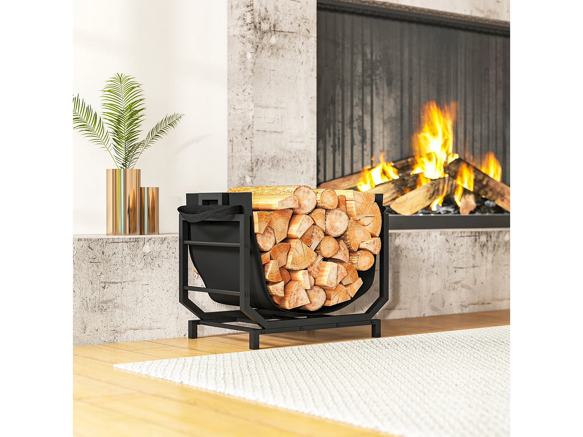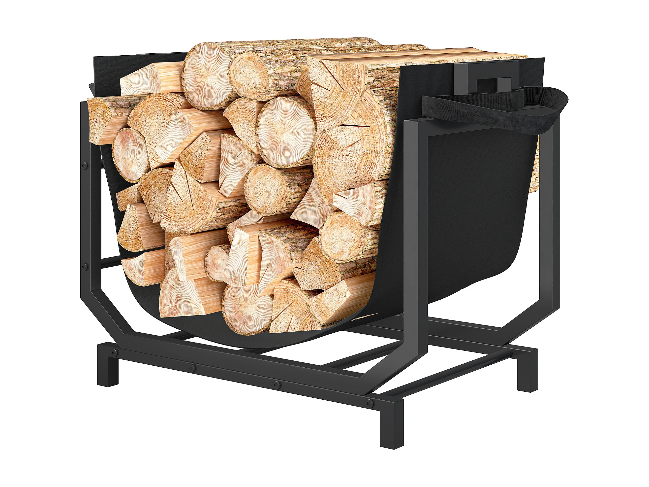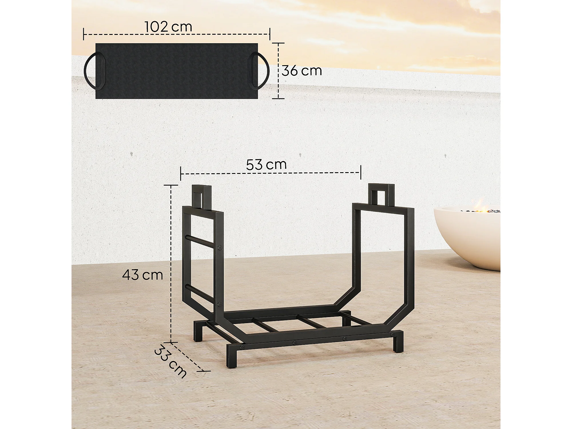 Porta legna capacità 50 kg con borsa da trasporto rimovibile nero