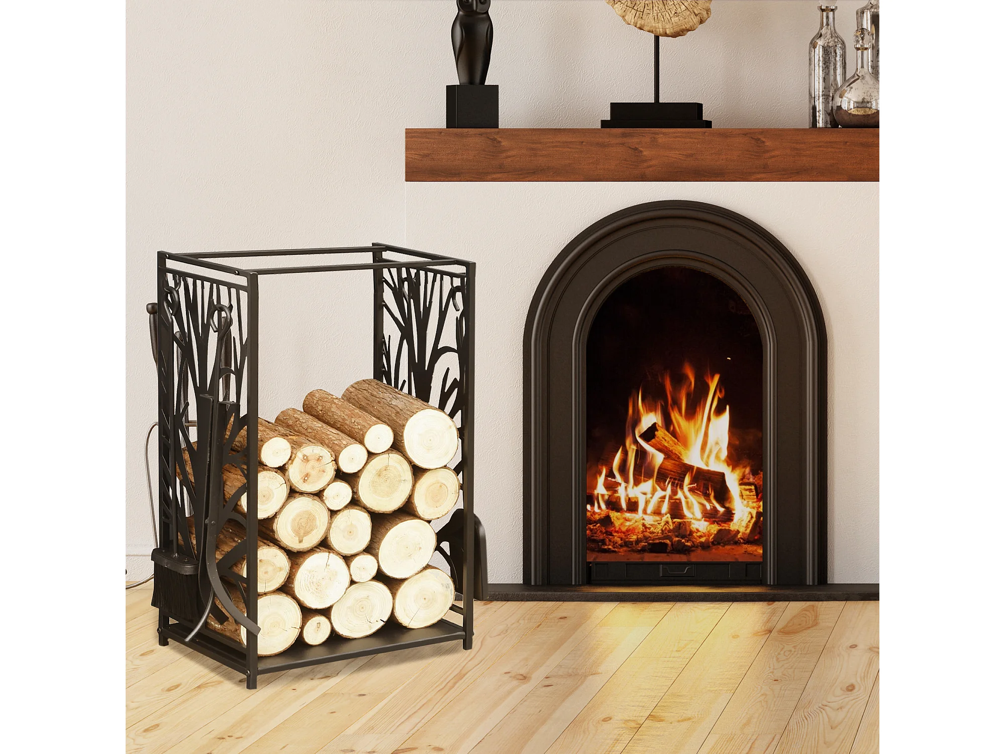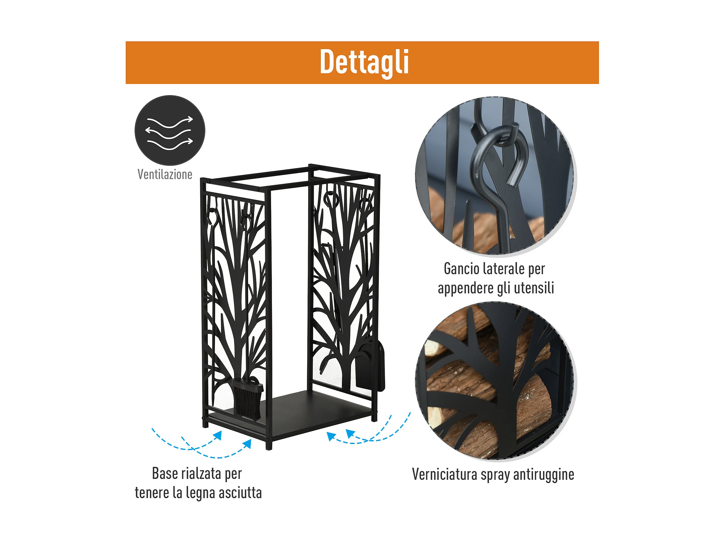 Porta legna per interni ed esterni con design elegante e 4 attrezzi