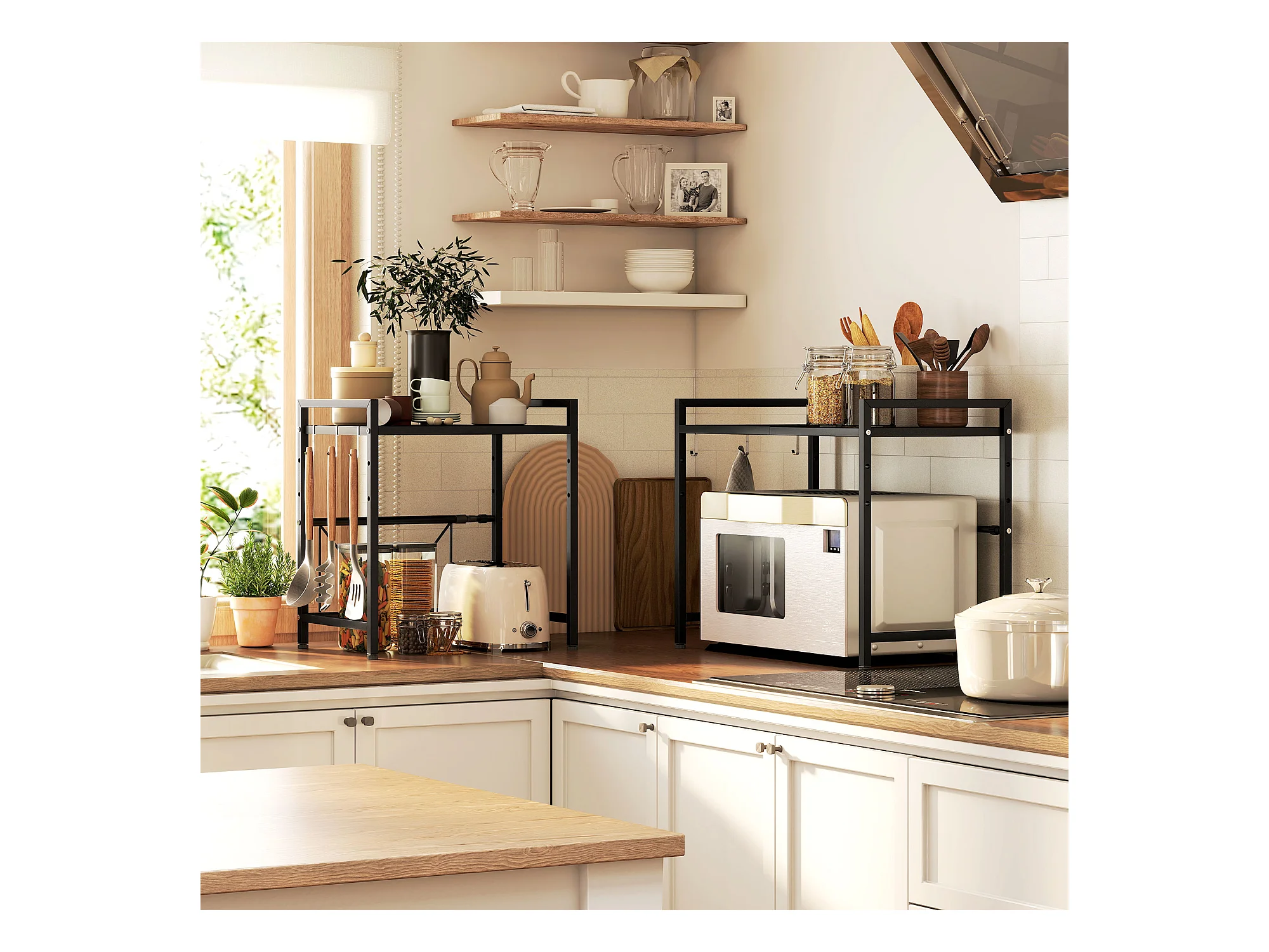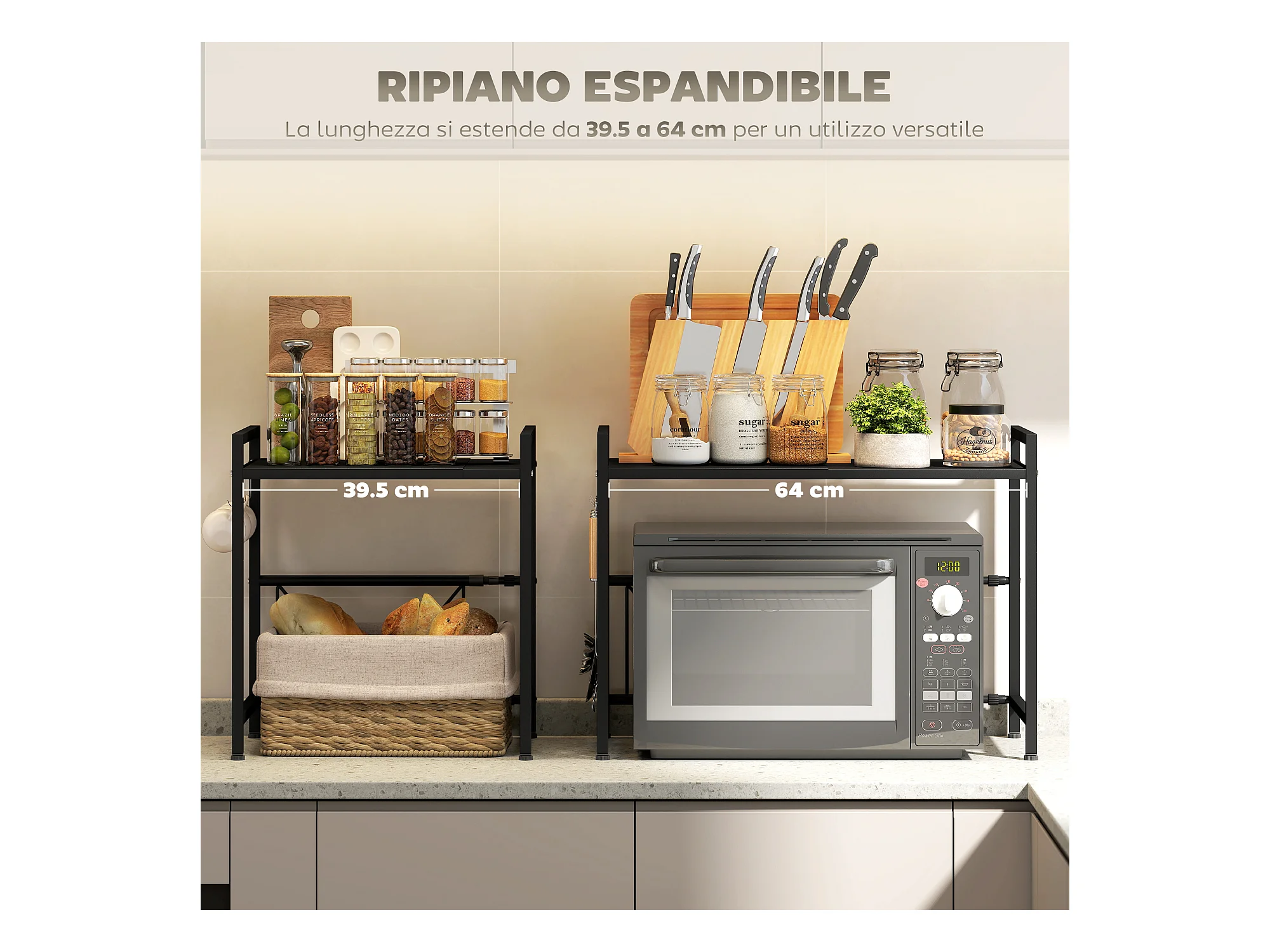 Porta microonde estensibile a 2 livelli con 3 ganci in metallo nero