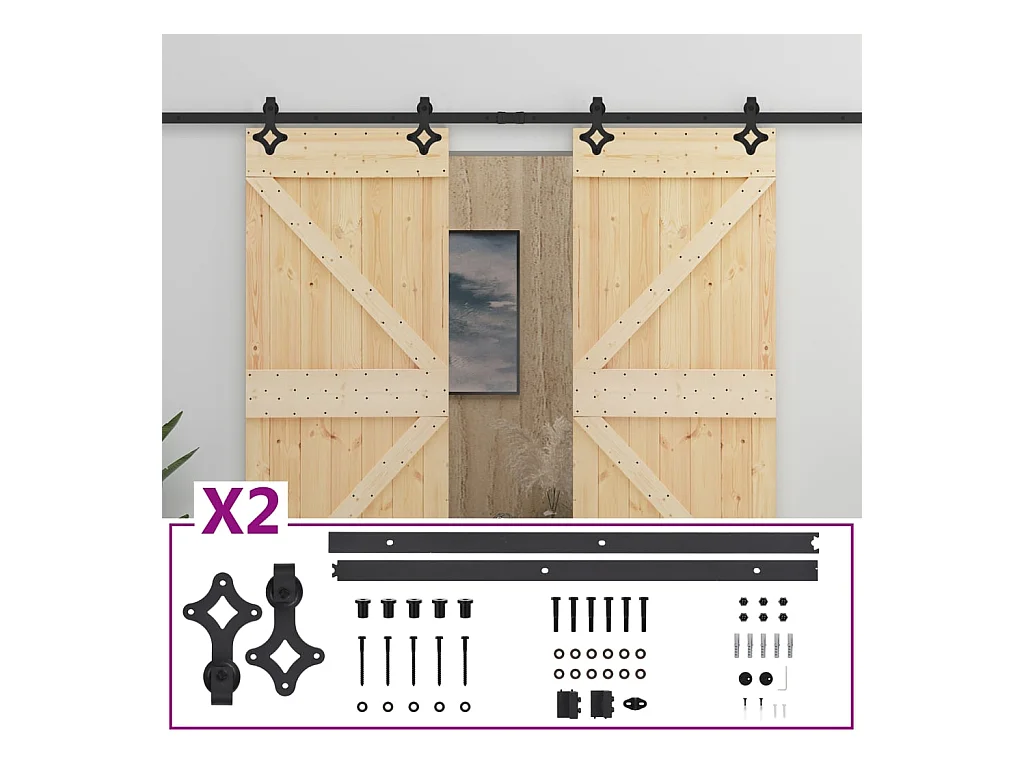 Kit porta scorrevole e ferramenta 90x210 cm in pino massello