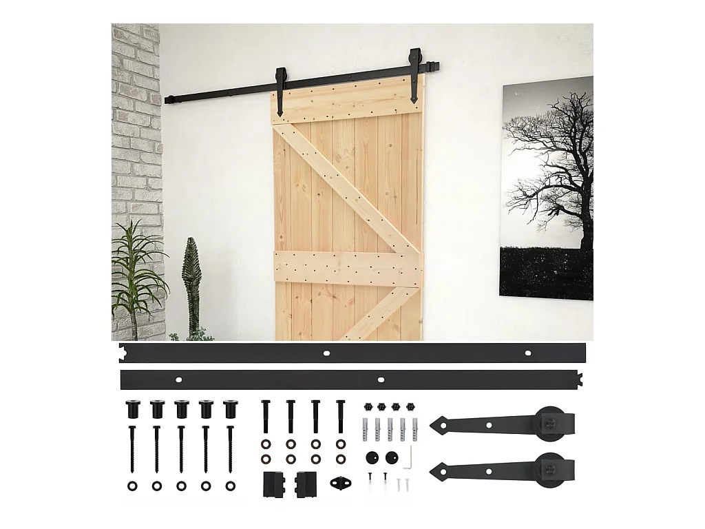 Kit porta scorrevole e ferramenta 90x210 cm in pino massello