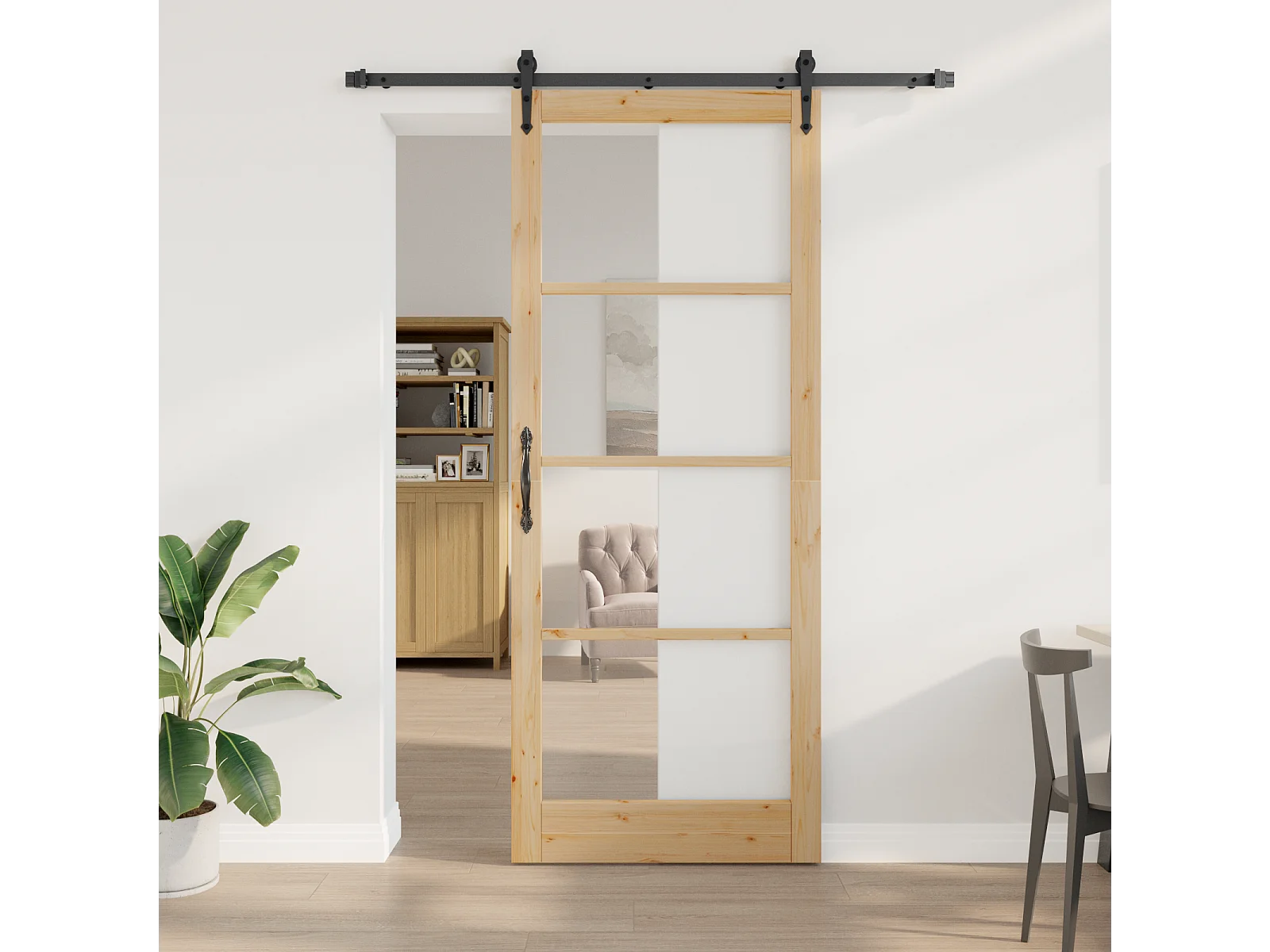 Porta scorrevole con set ferramenta 83x232 cm Legno massello di pino