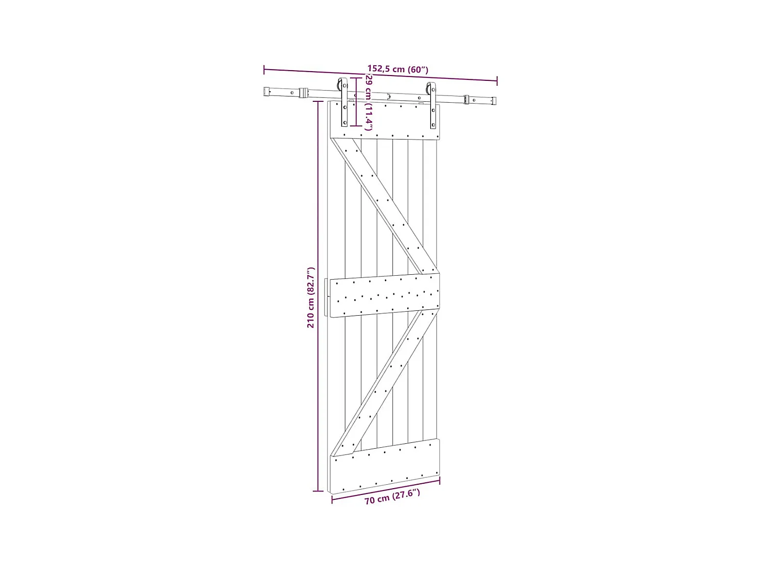 Porta Scorrevole con Set Hardware 70x210 cm Legno Massello Pino