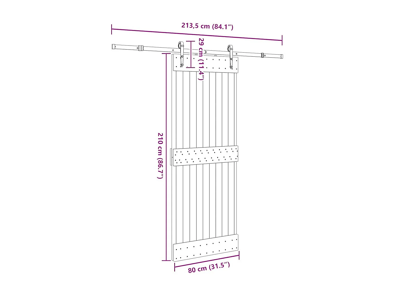 Porta Scorrevole con Set Hardware 80x210 cm Legno Massello Pino