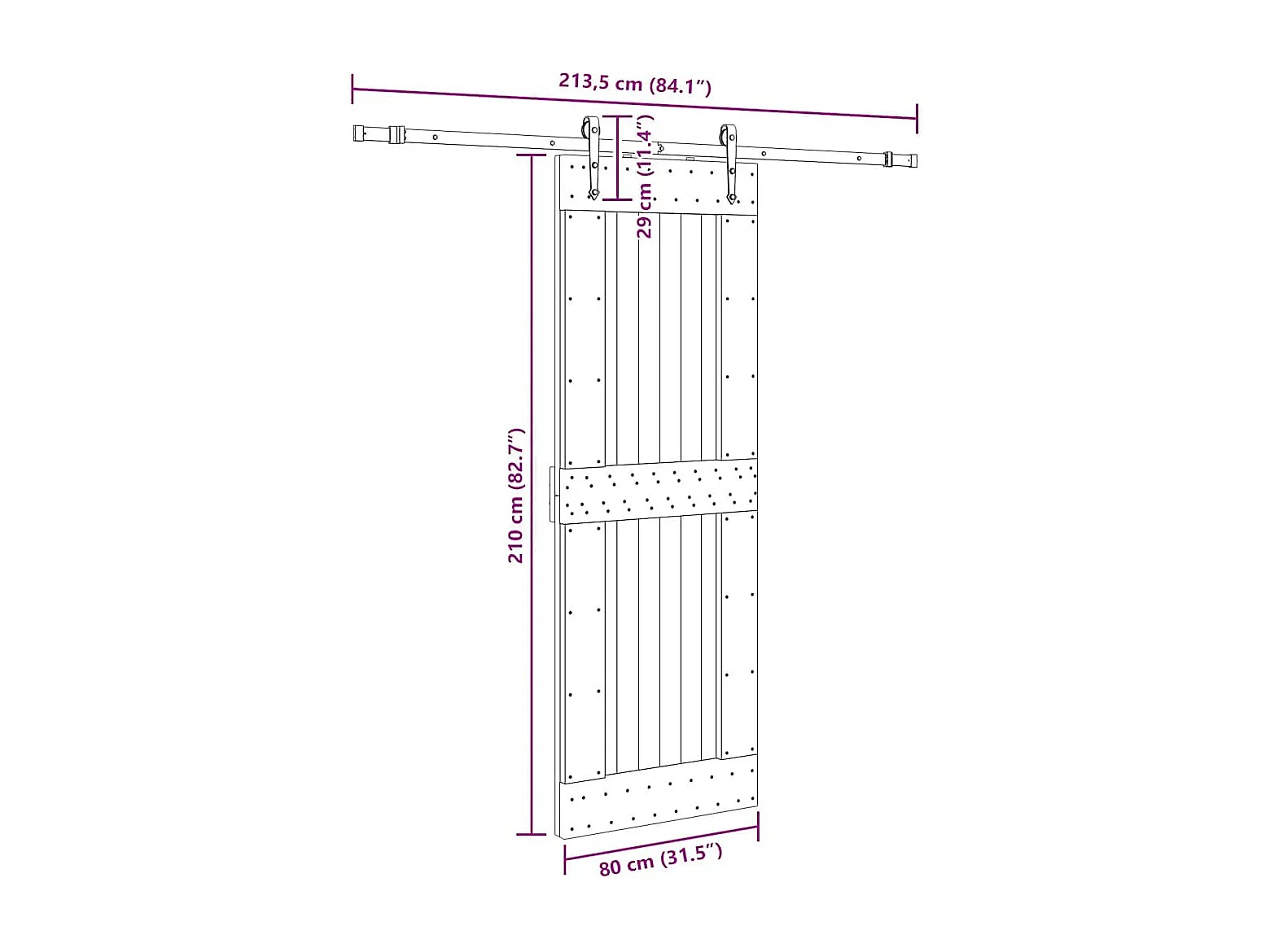 Porta Scorrevole con Set Hardware 80x210 cm Legno Massello Pino