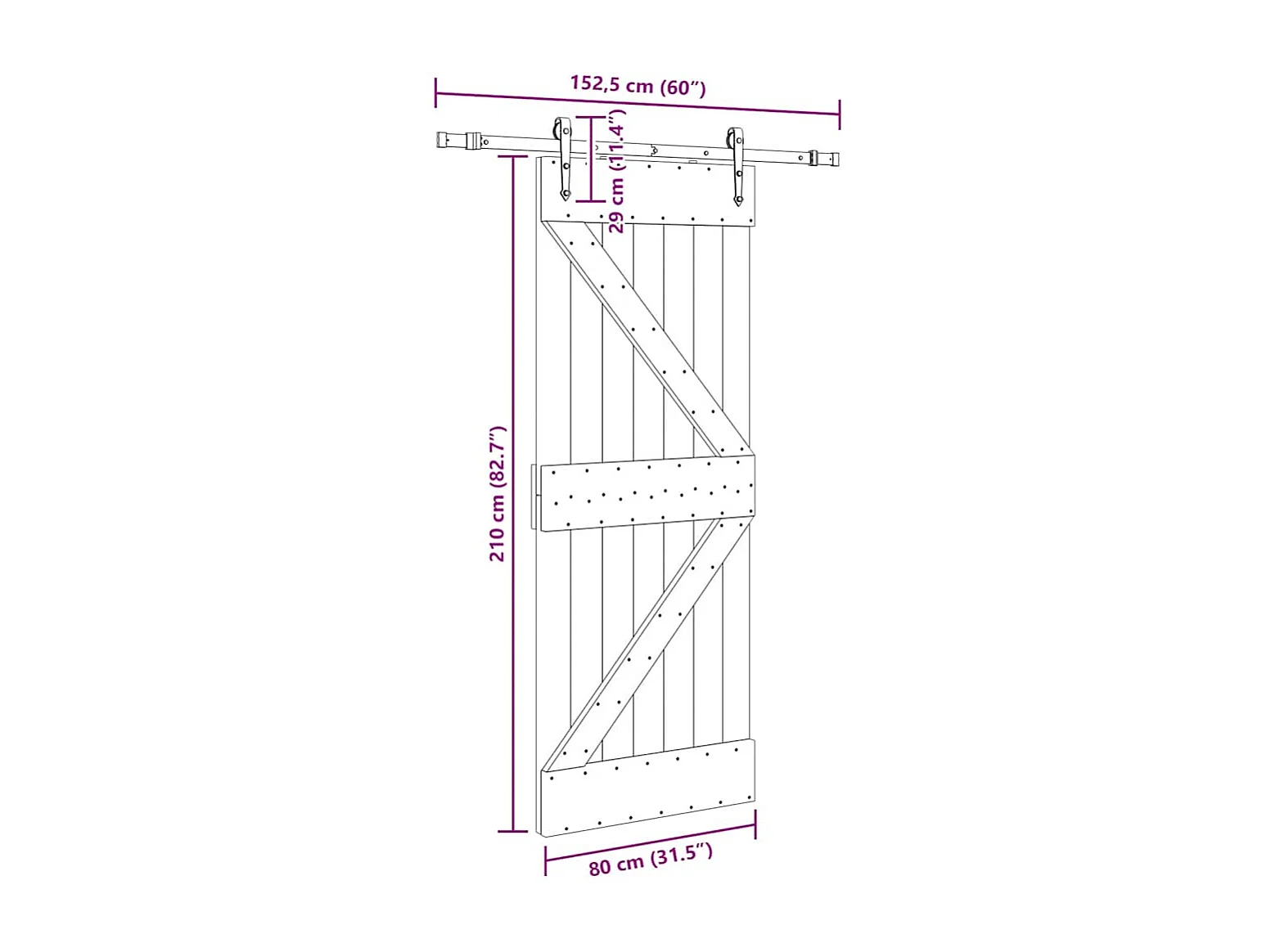 Porta Scorrevole con Set Hardware 80x210 cm Legno Massello Pino