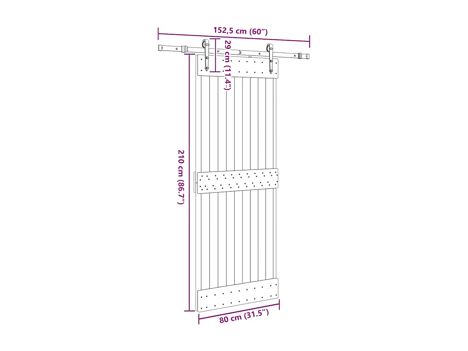 Porta Scorrevole con Set Hardware 85x210 cm Legno Massello Pino