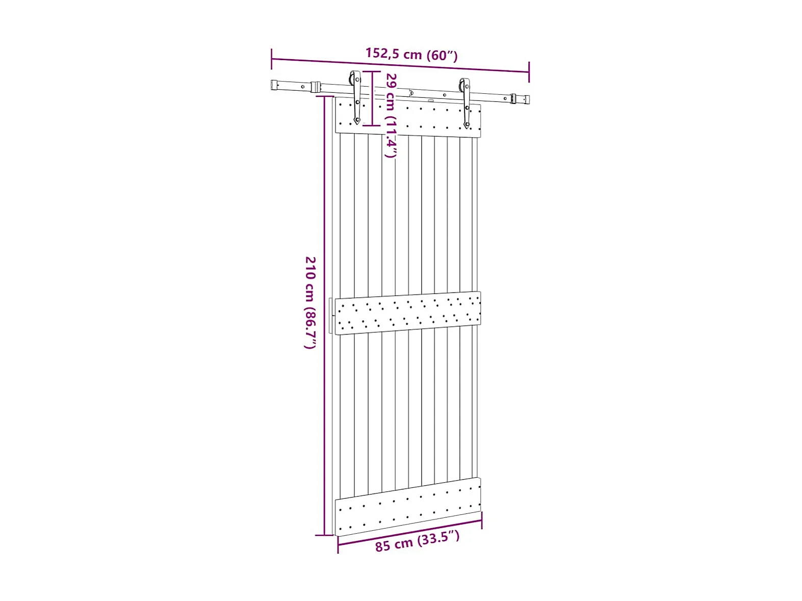 Porta Scorrevole con Set Hardware 85x210 cm Legno Massello Pino