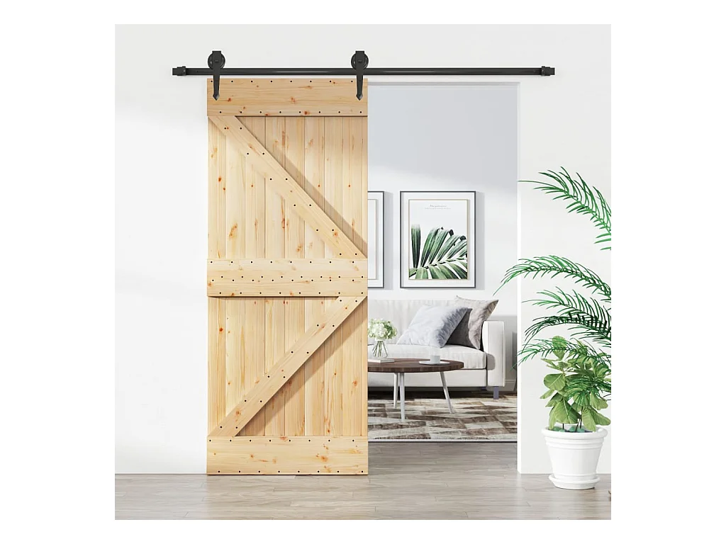 Porta Scorrevole con Set Hardware 85x210 cm Legno Massello Pino