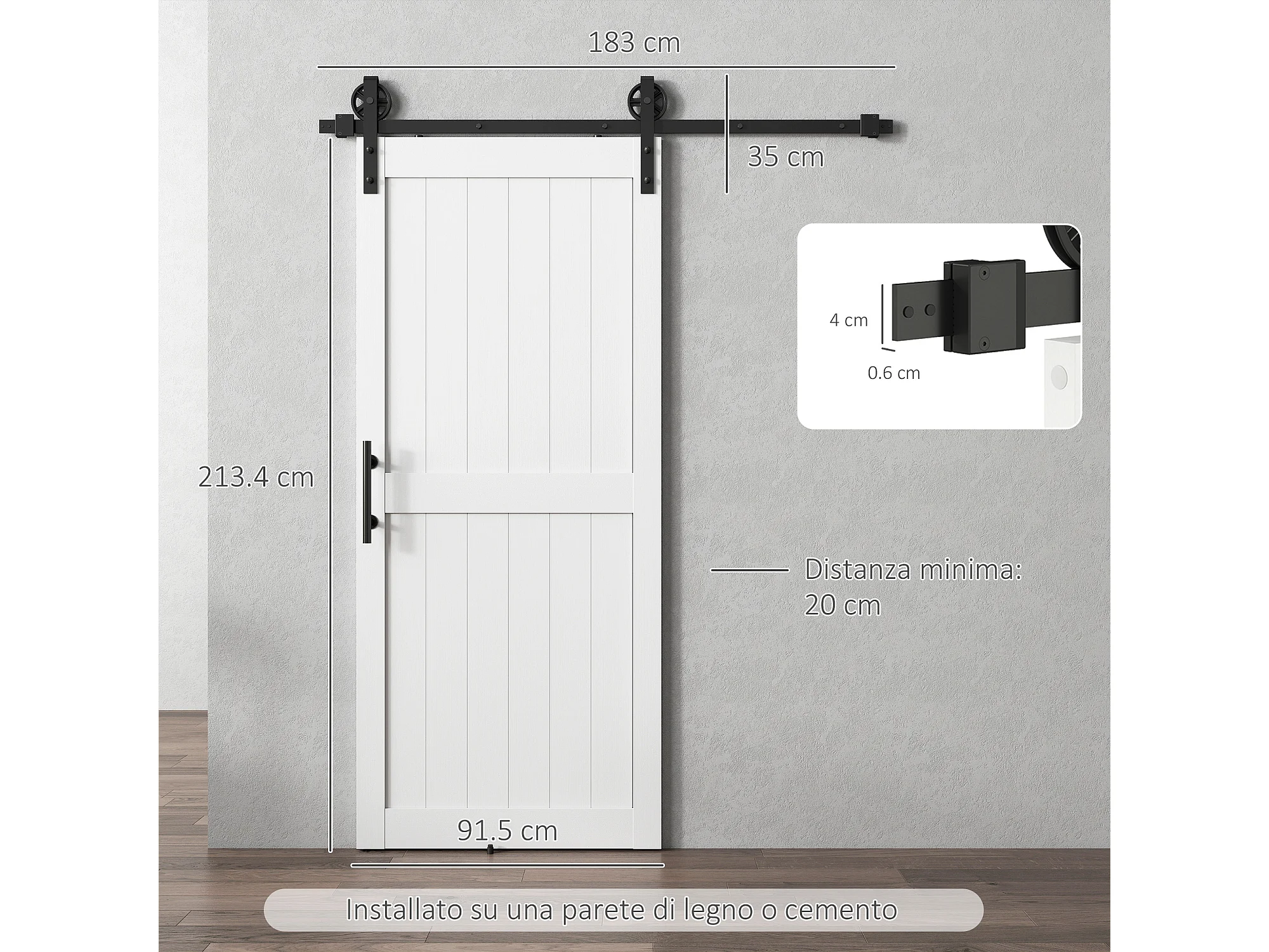 Porta scorrevole in stile country in legno e acciaio bianco e nero