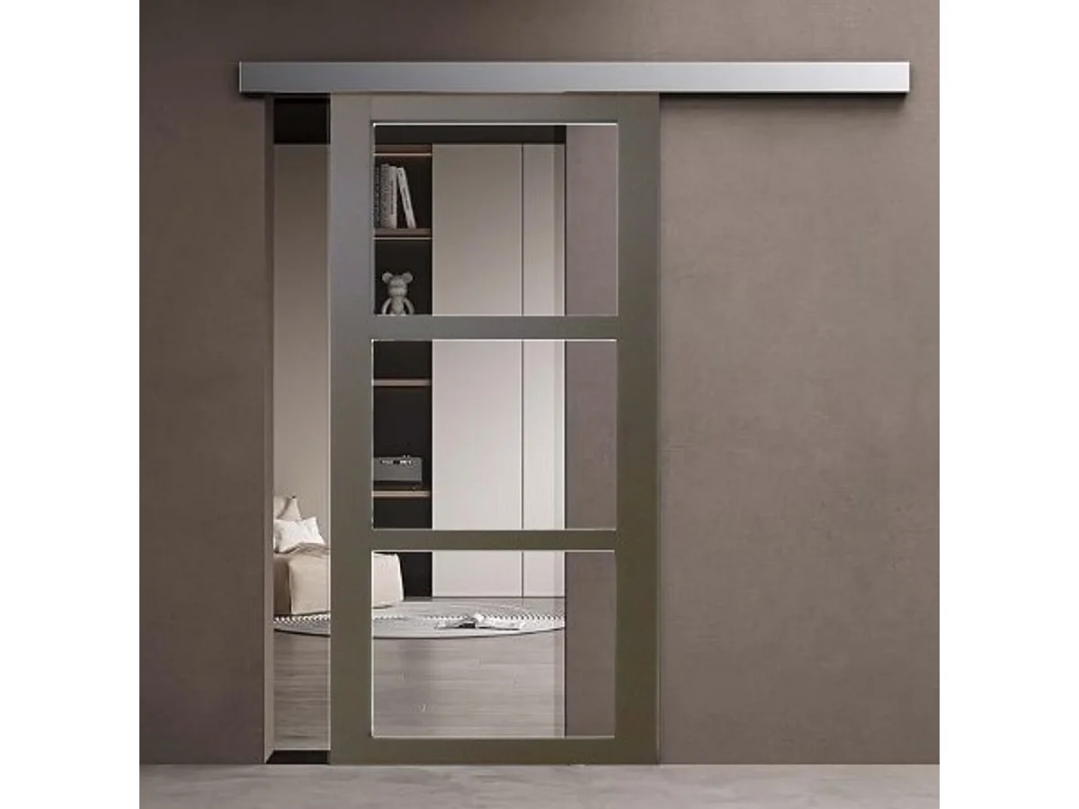Porta Scorrevole in Vetro Athena RAL7035 H204 x L83 + Binario in Alluminio Nero e 2 Gusci Neri