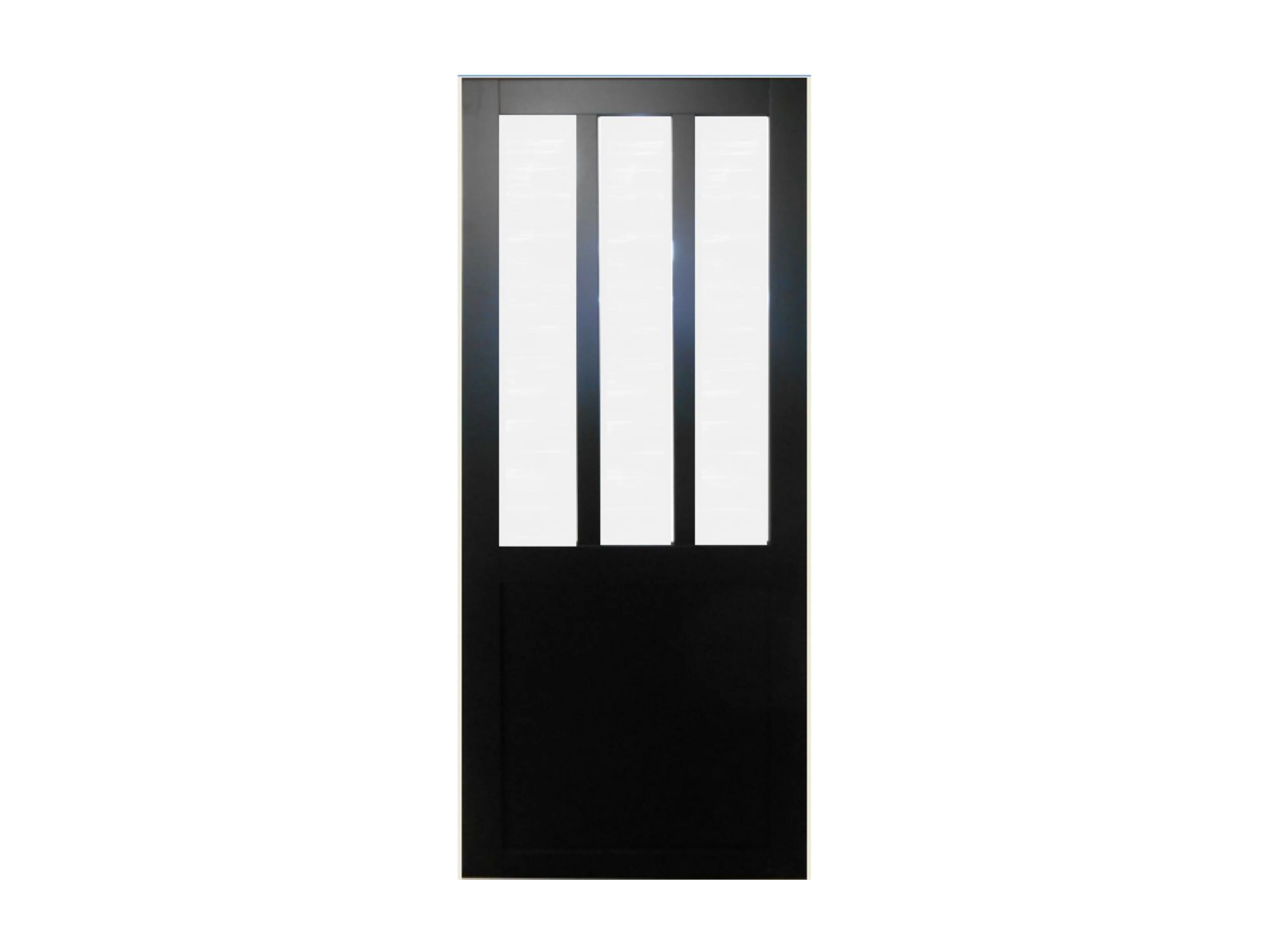 Porta scorrevole nera per officina in vetro H204 x L73 senza montante + binario in alluminio Striscia nera