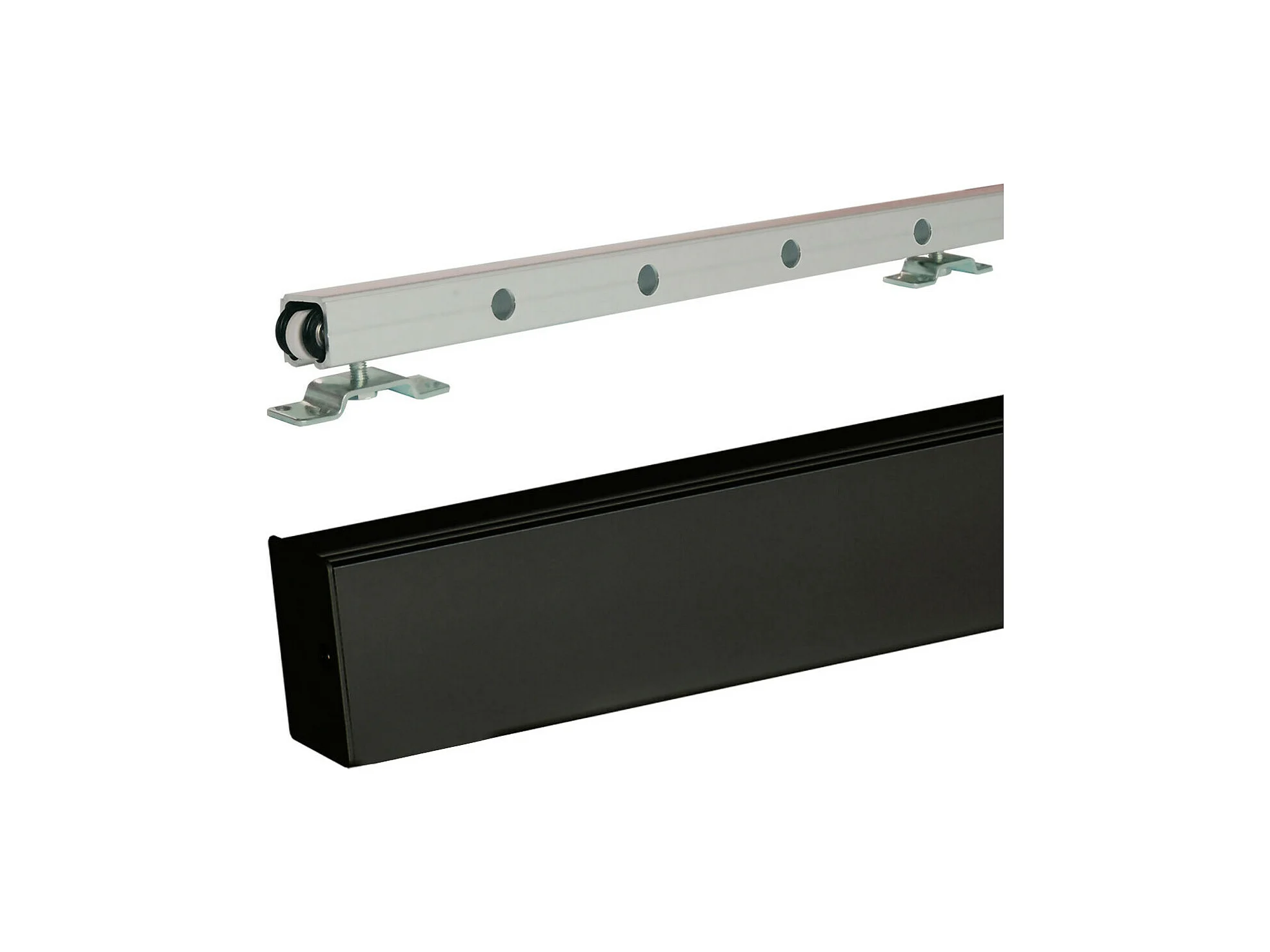 Porta scorrevole nera da officina in vetro satinato H204 x L73 + binario in alluminio e 2 gusci