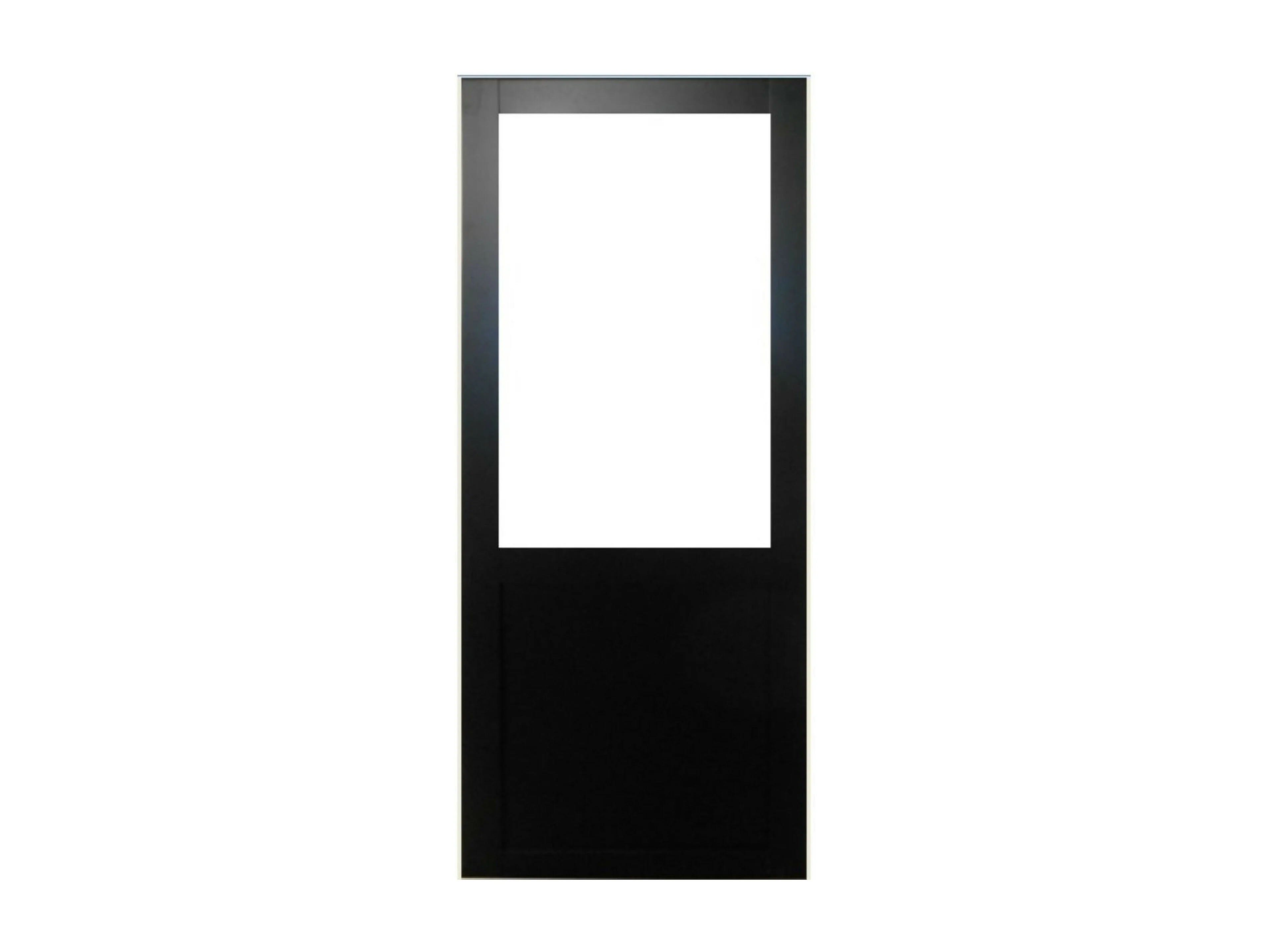 Porta scorrevole nera per officina in vetro H204 x L73 senza montante + binario in alluminio Striscia nera