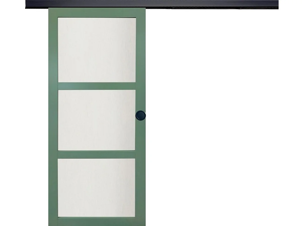 Porta Scorrevole Verde Ral 6021 Vetrata H204 x L73 + Binario Alluminio Nero e 2 Gusci Neri