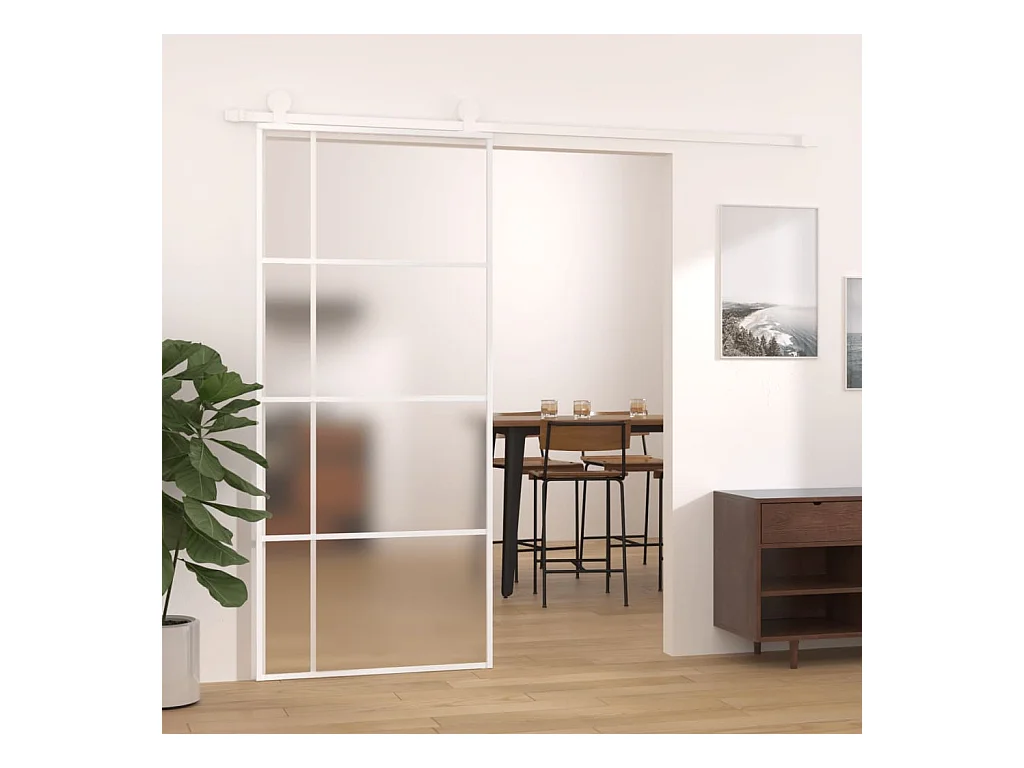 Porta scorrevole Vetro ESG satinato e alluminio 90x205 cm Bianco