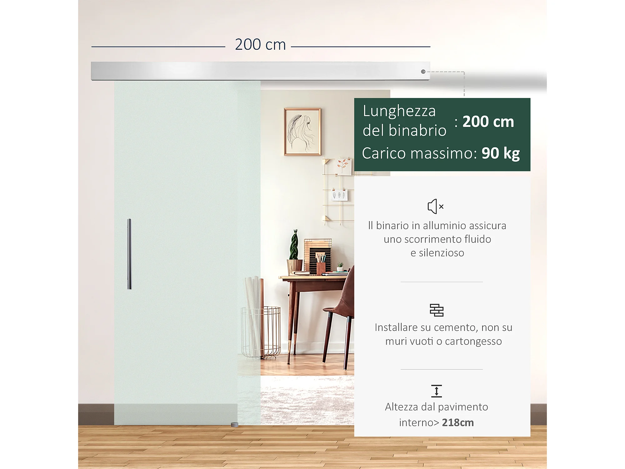 Porta scorrevole vetro satinato 8 mm con maniglia 205x77.5 cm
