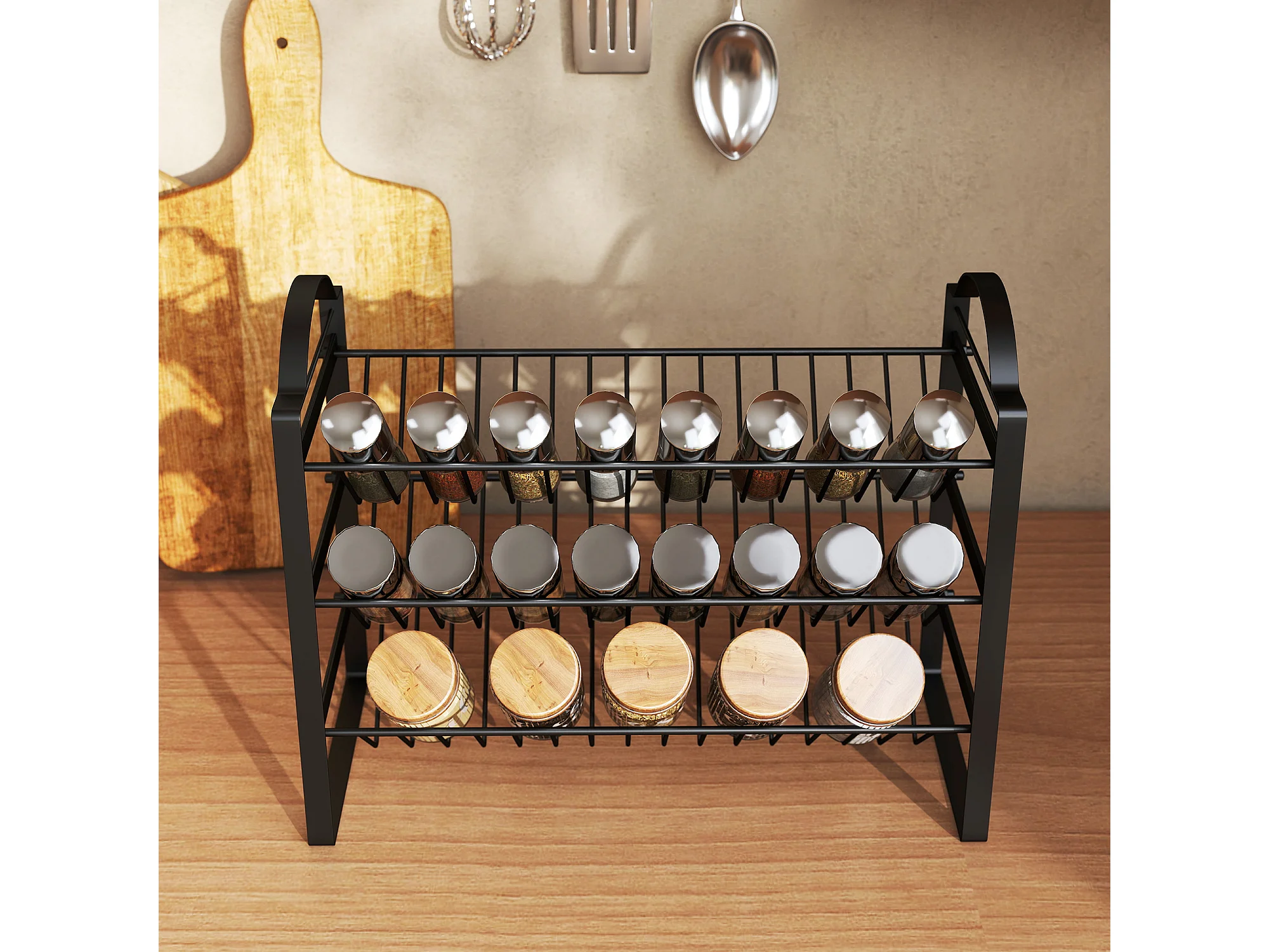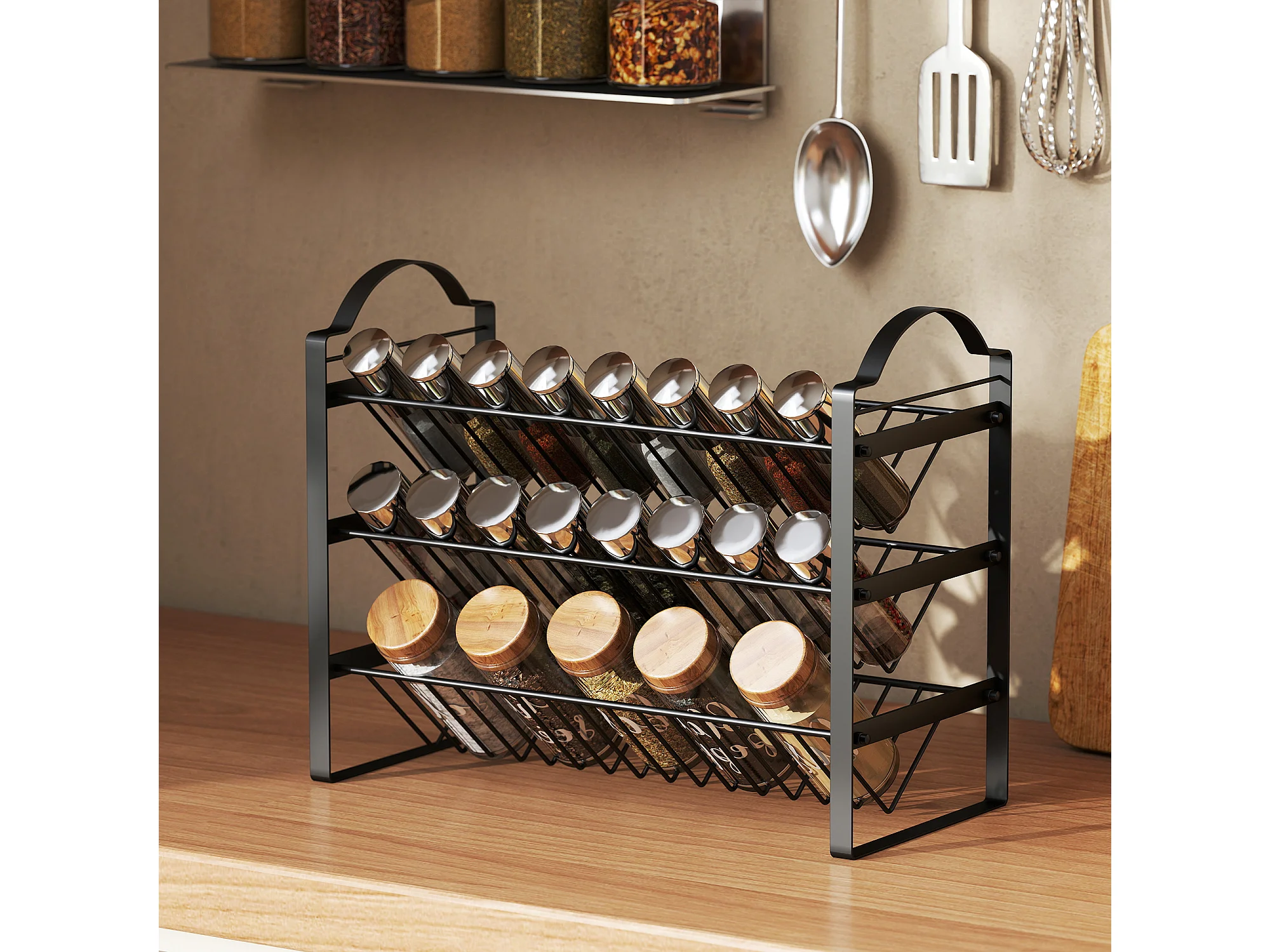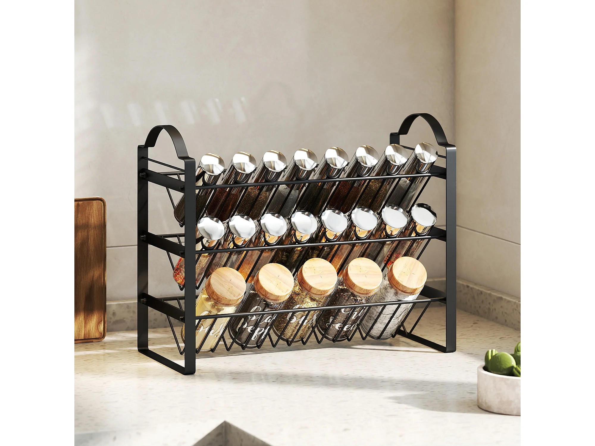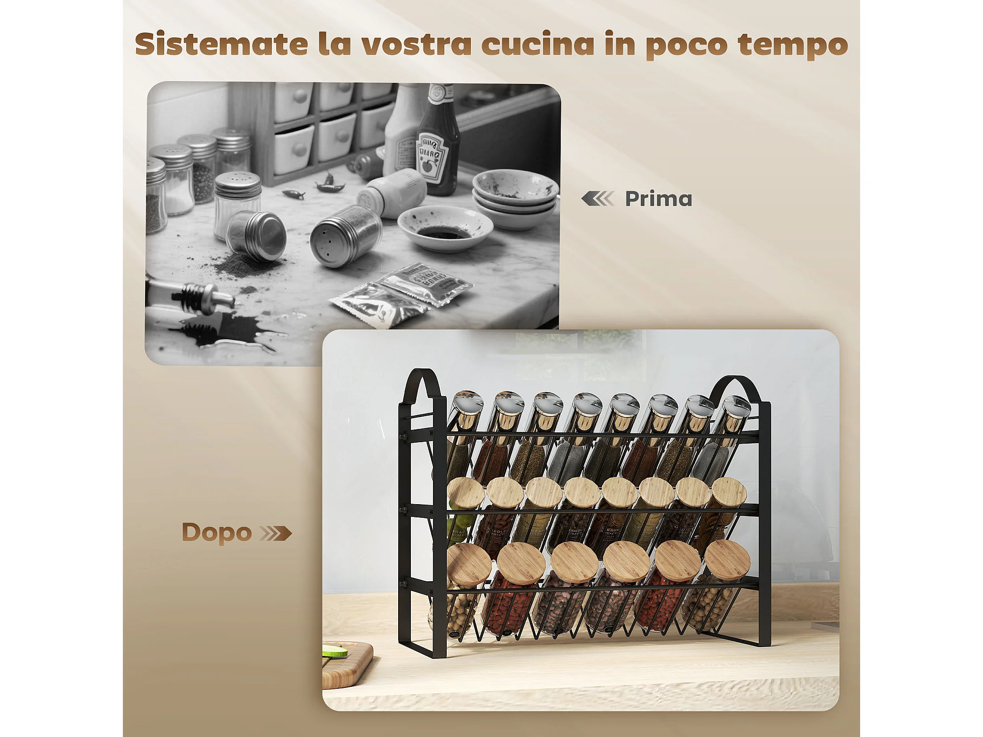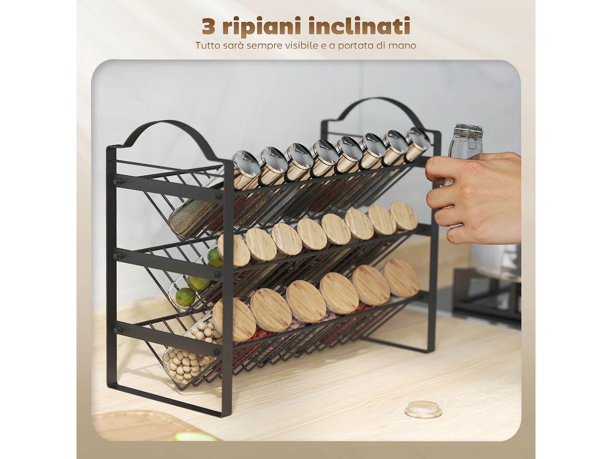 Porta spezie per cucina a 3 livelli portaspezie salvaspazio con ripiani inclinati in metallo