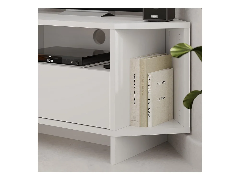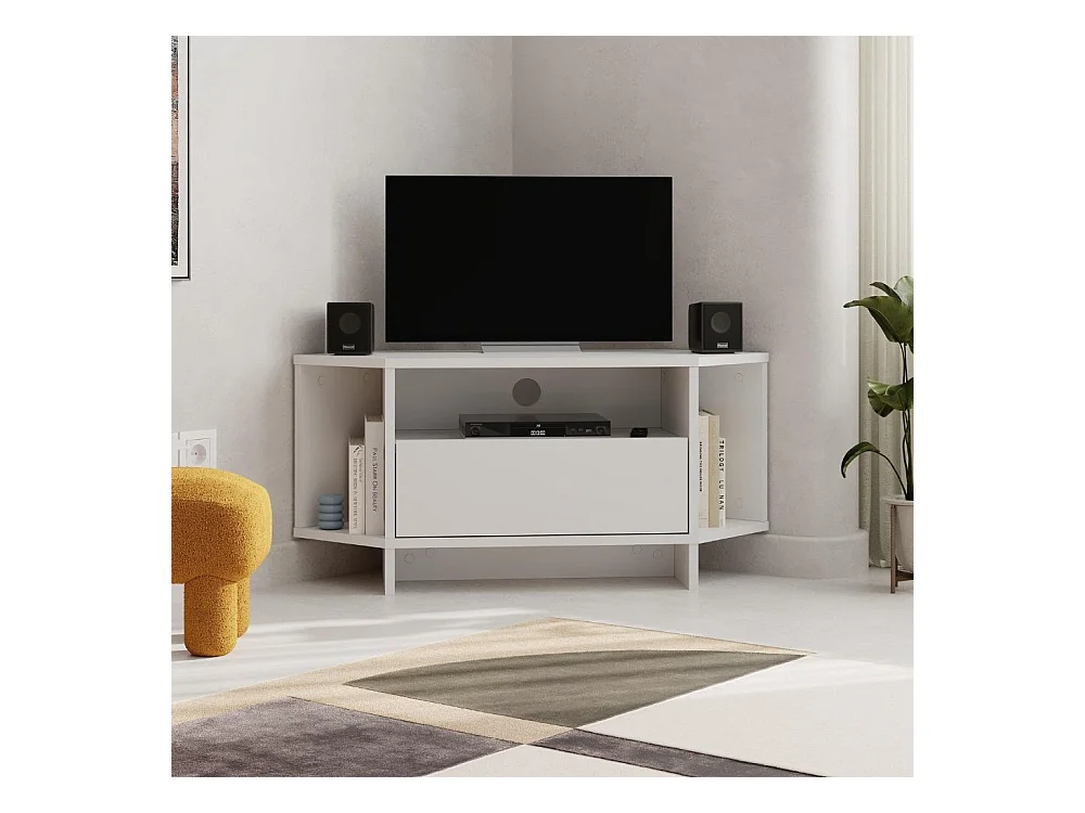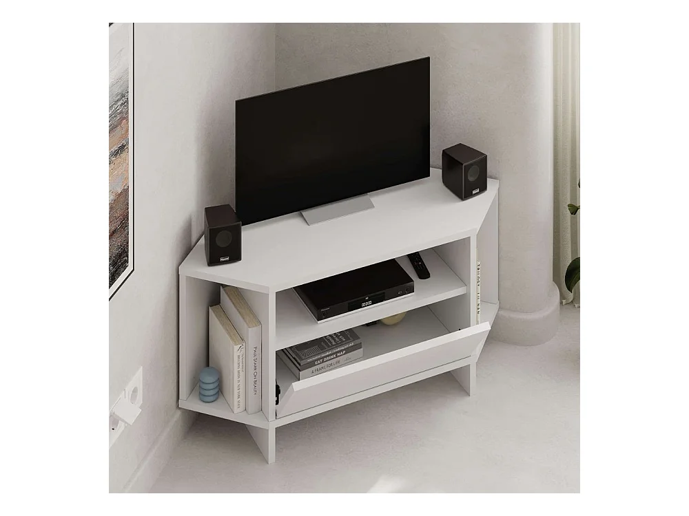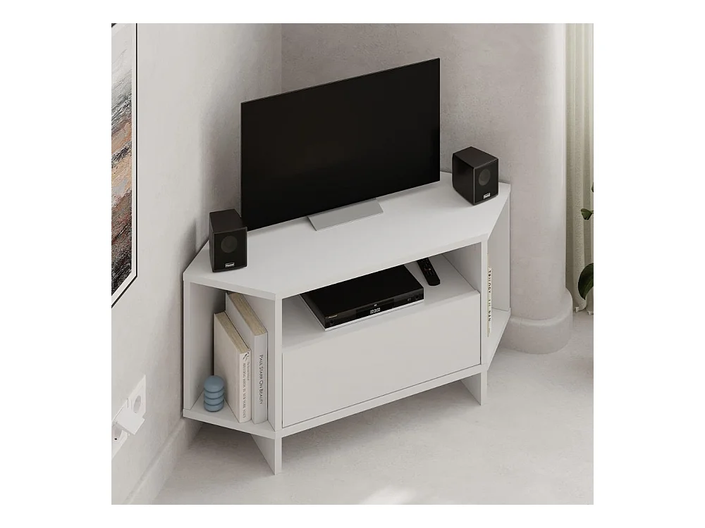 Porta TV angolare Viva colore bianco 95.7x35.4x45.3H – Design Funzionale per spazi intelligenti