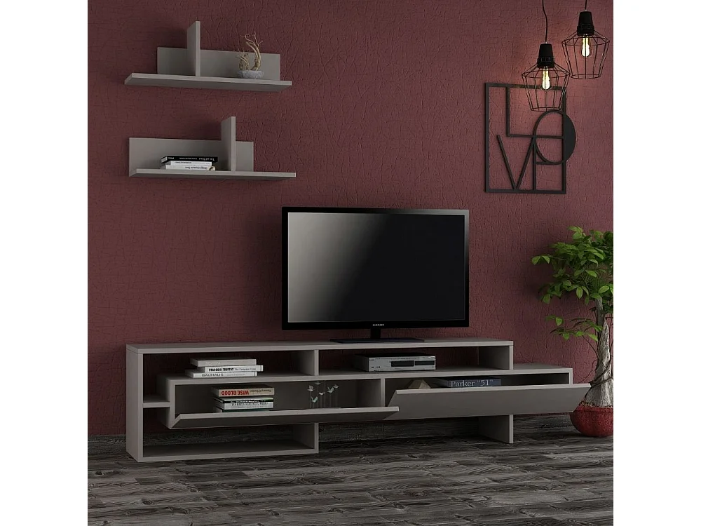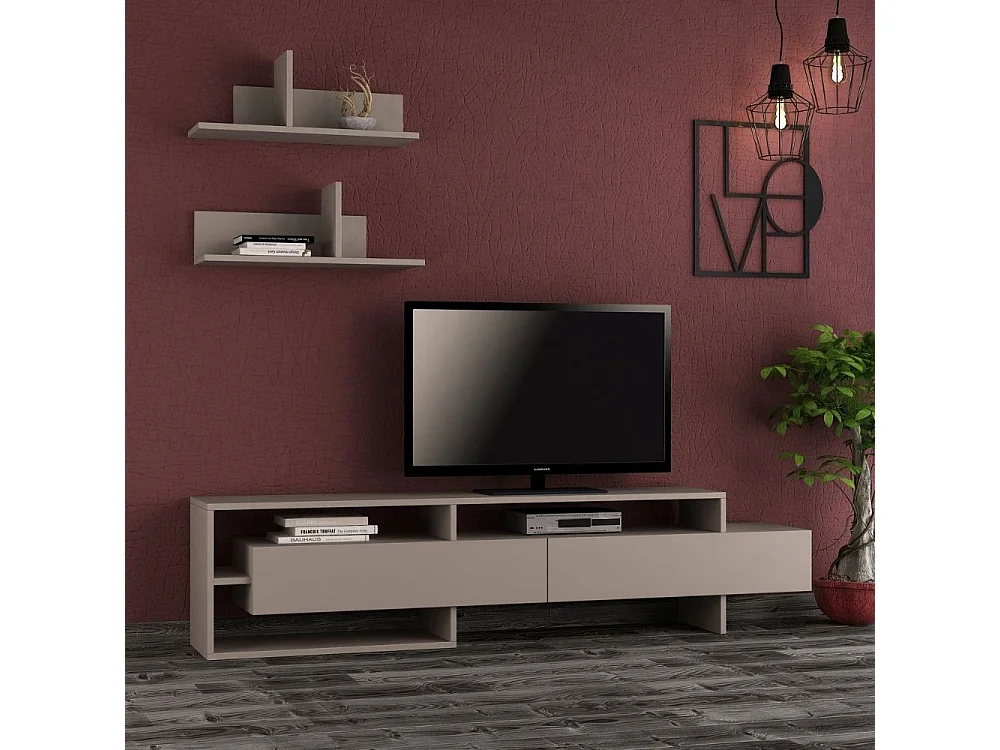 Porta tv con mensole a parete Gara 180 colore tortora