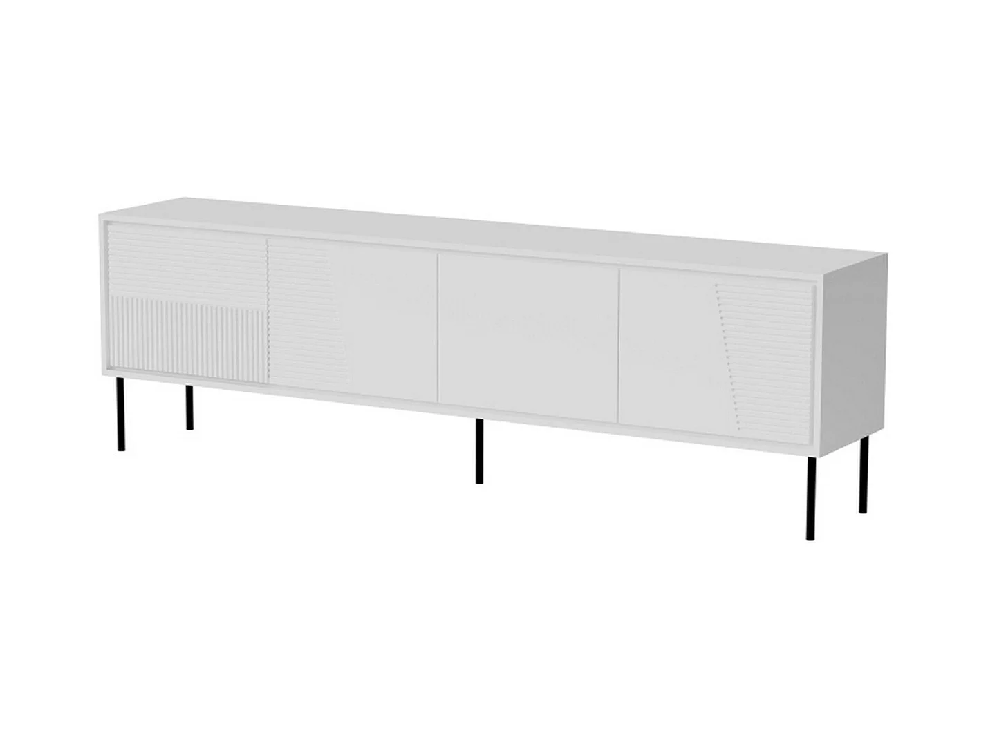 Porta TV di design 200 cm bianco opaco con gambe in metallo nero Ula