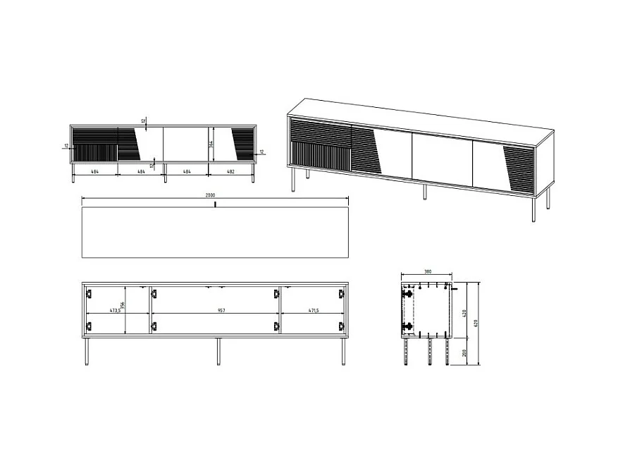 Mobile TV di design bianco opaco da 200 cm con 4 ante Kali