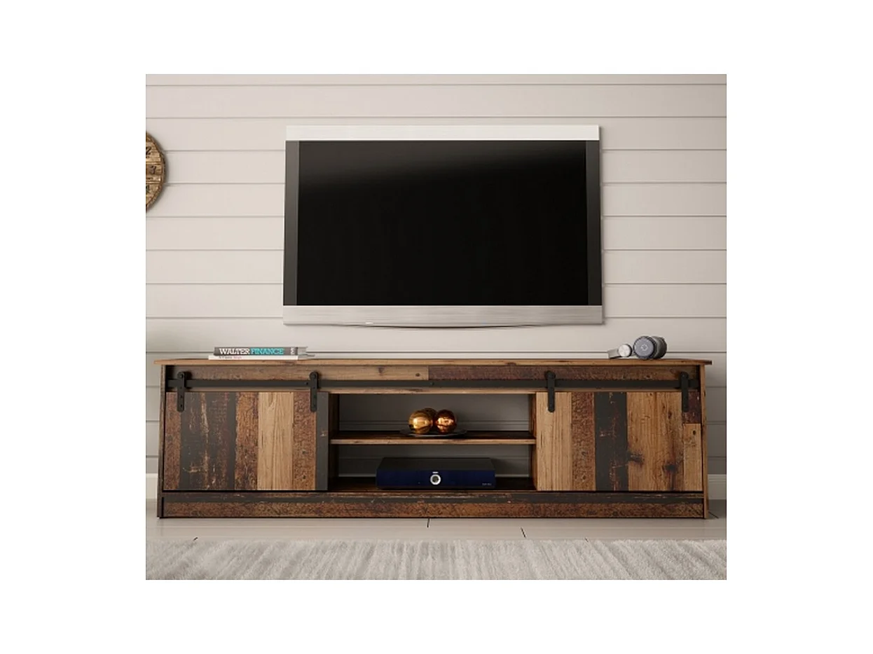 Porta TV di design a 4 ante in cemento scuro e rovere Ludwig