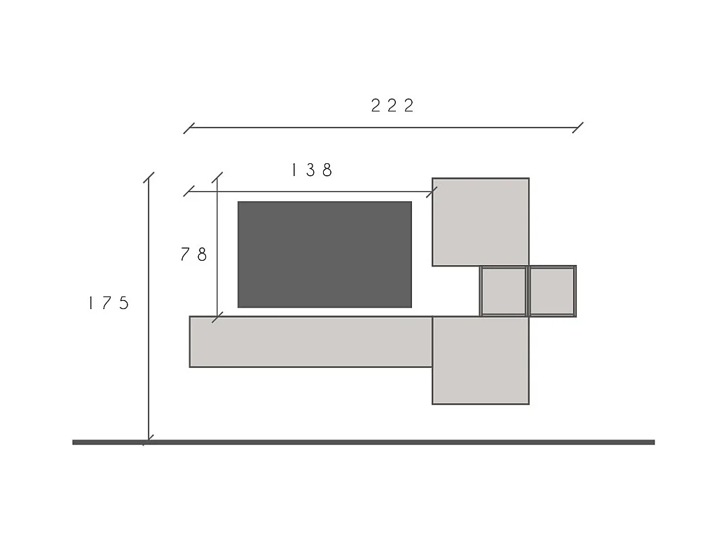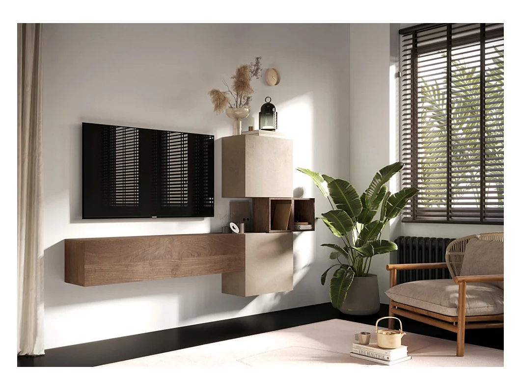 Porta TV sospeso 222x175 cm argilla e noce PTL32