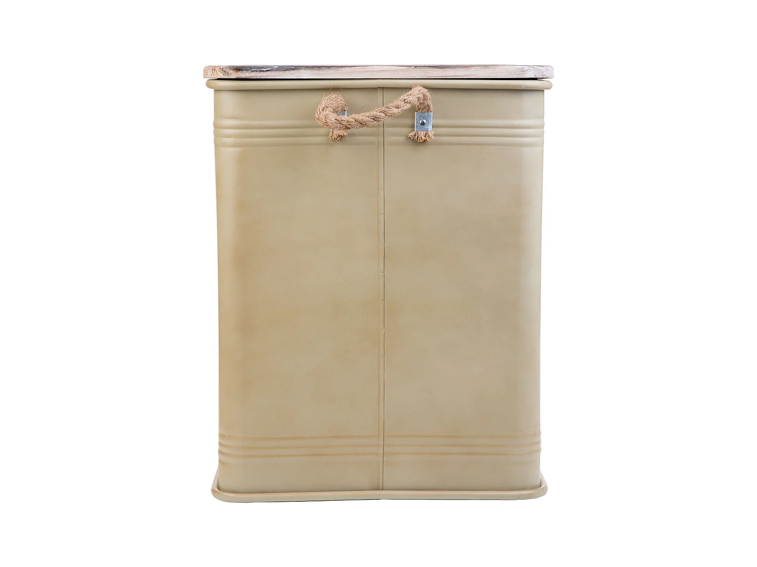 Wäschekorb mit Deckel und 2 Fächern, Bambus und Metall, Braun und Weiß (52x32x63 cm)