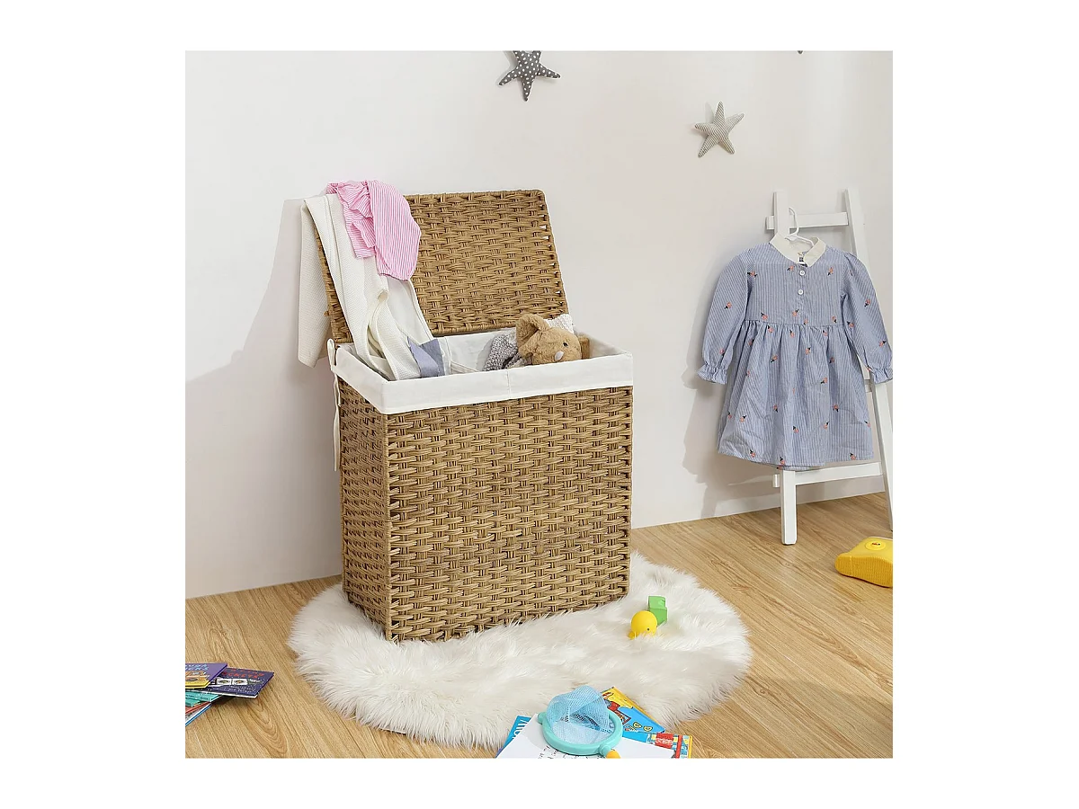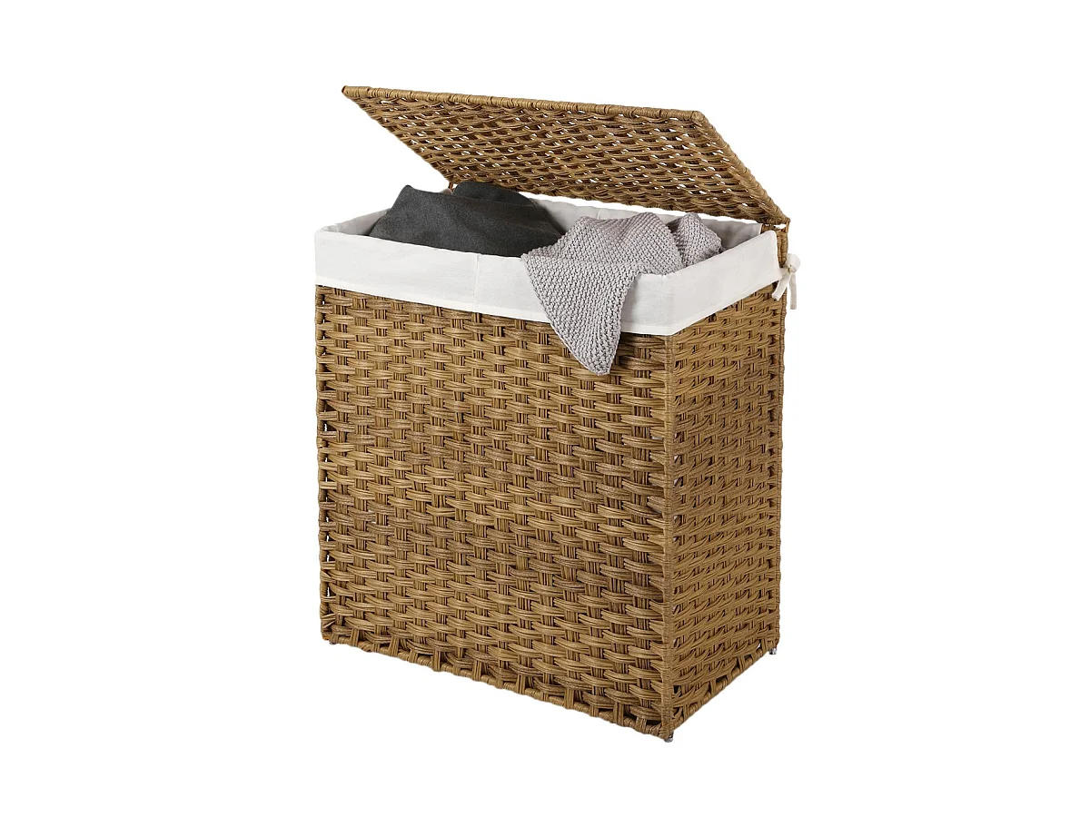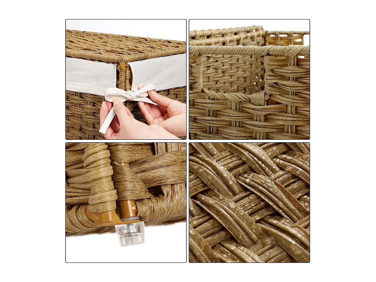 Portabiancheria pieghevole intrecciato a mano con coperchio e maniglie