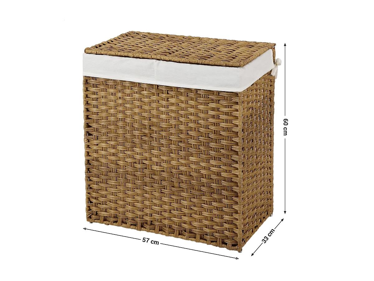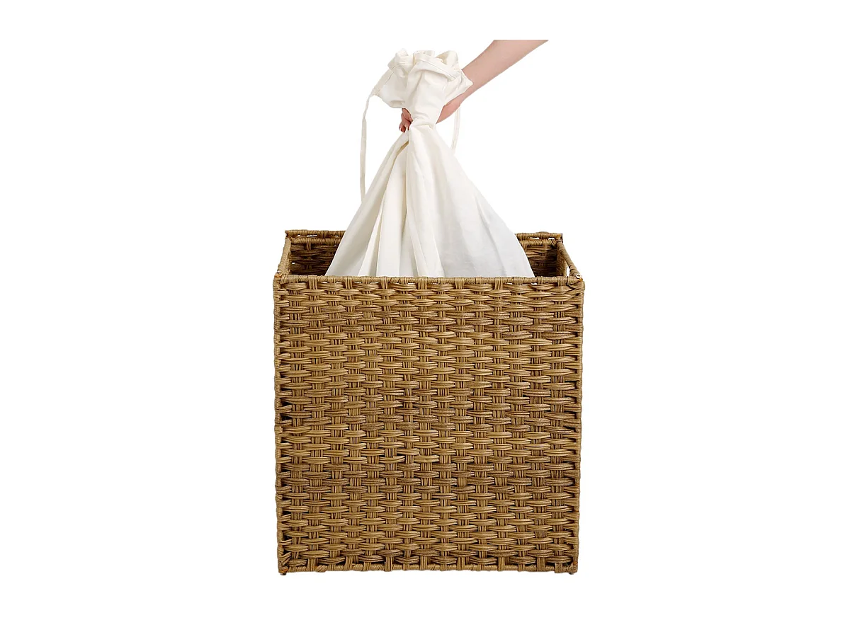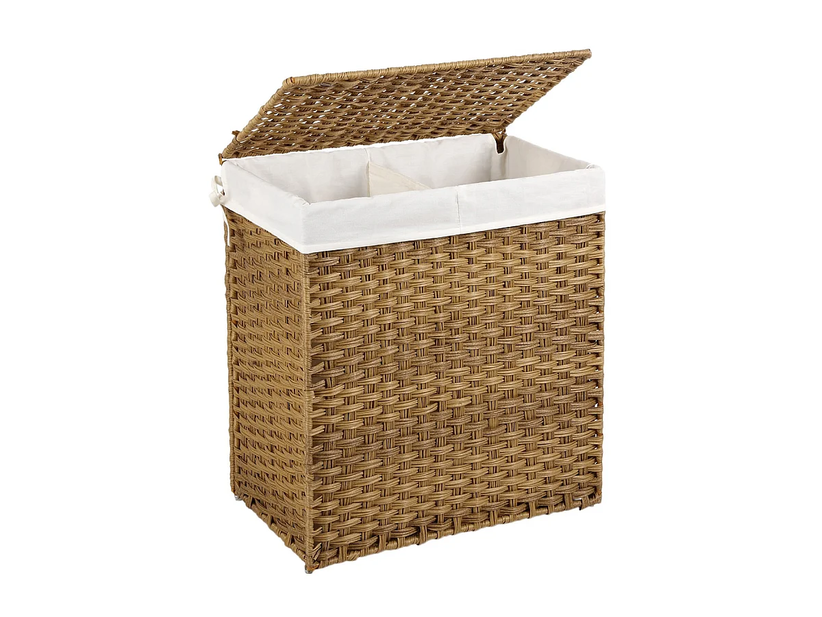 Portabiancheria pieghevole intrecciato a mano con coperchio e maniglie
