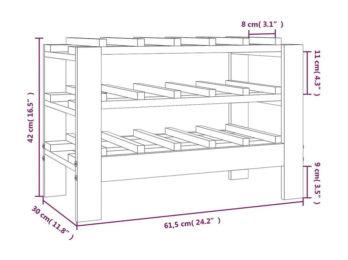 Portabottiglie 61,5x30x42 cm Legno di pino massiccio
