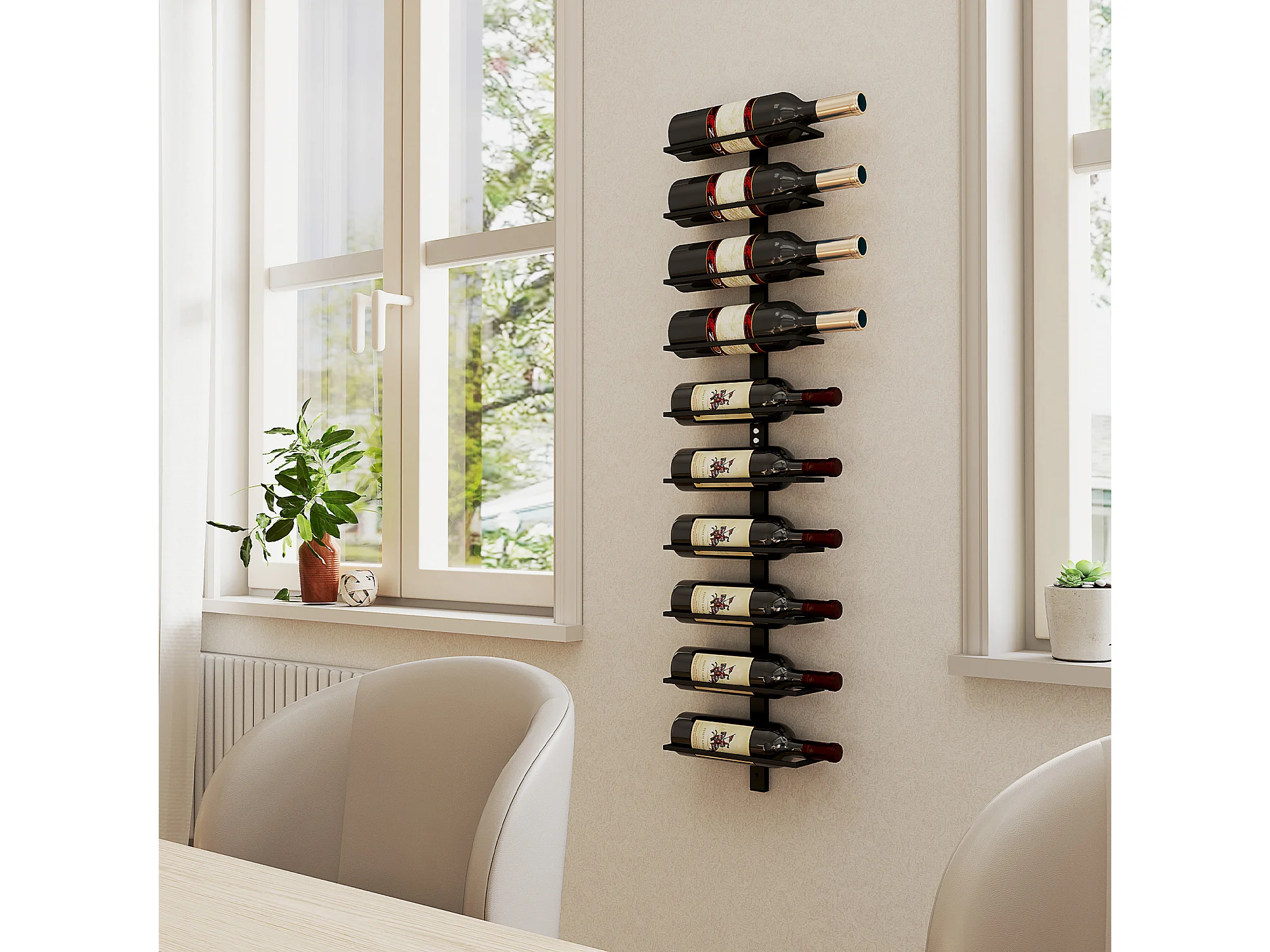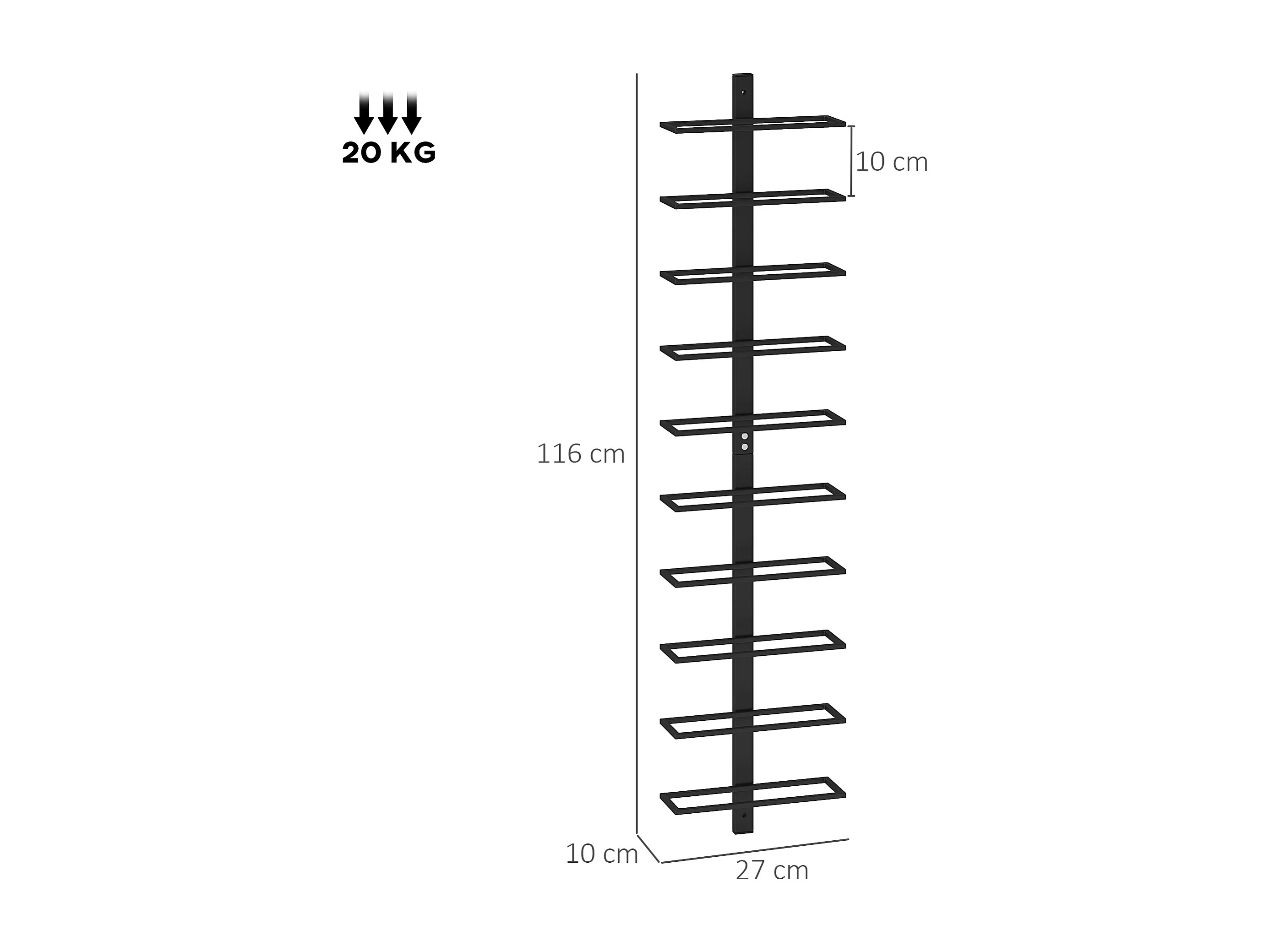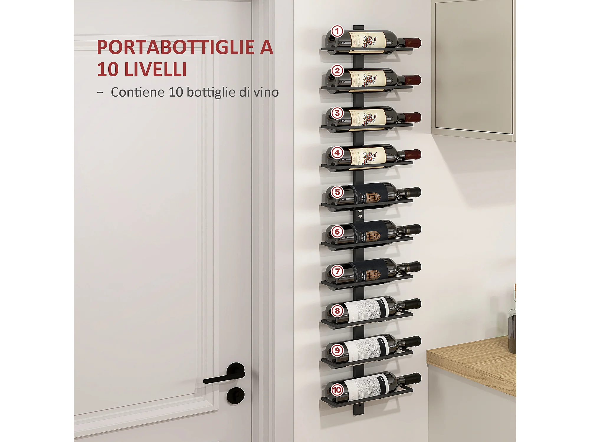 Portabottiglie da parete a 10 ripiani in acciaio 27x10x116 cm nero