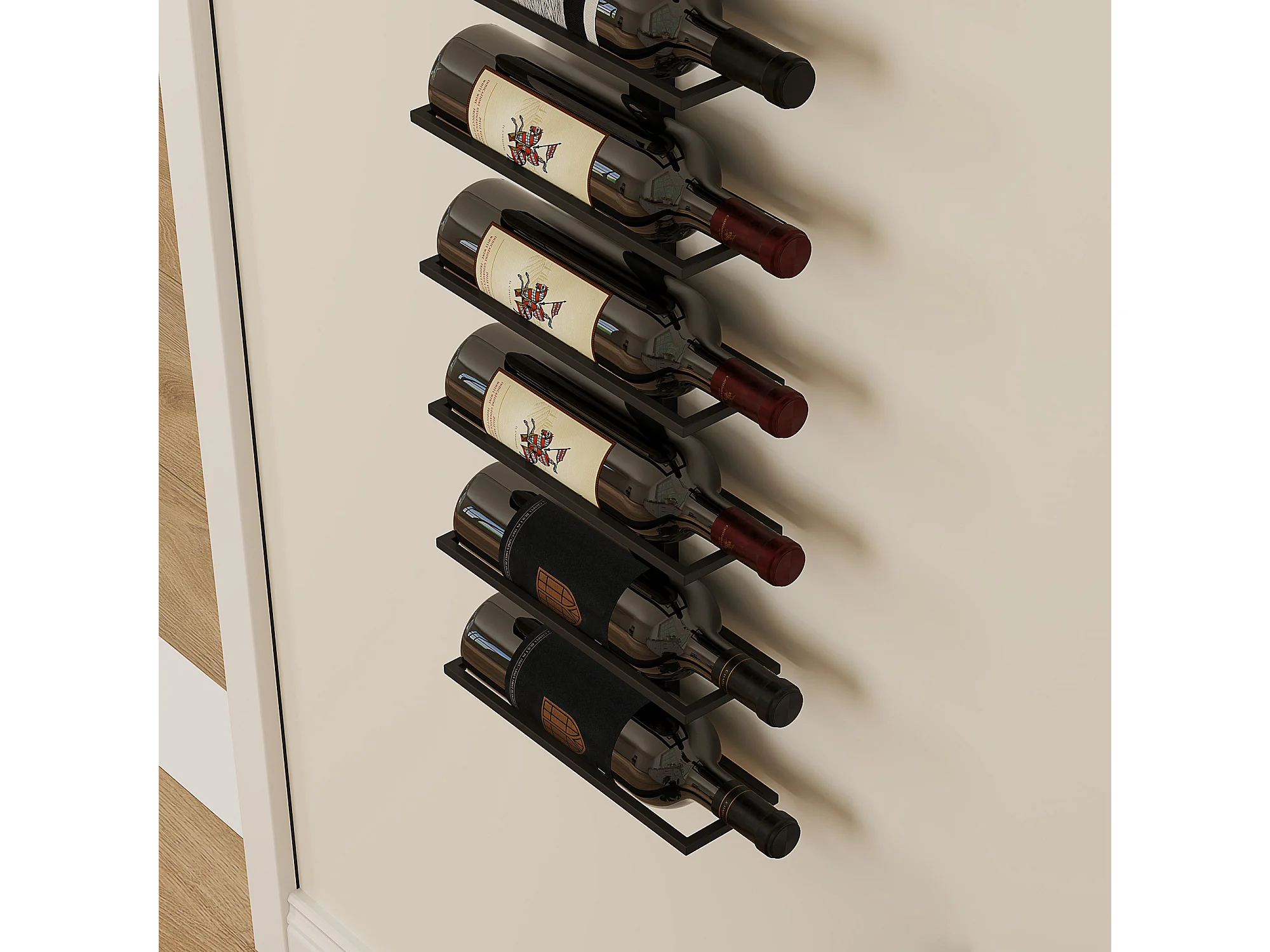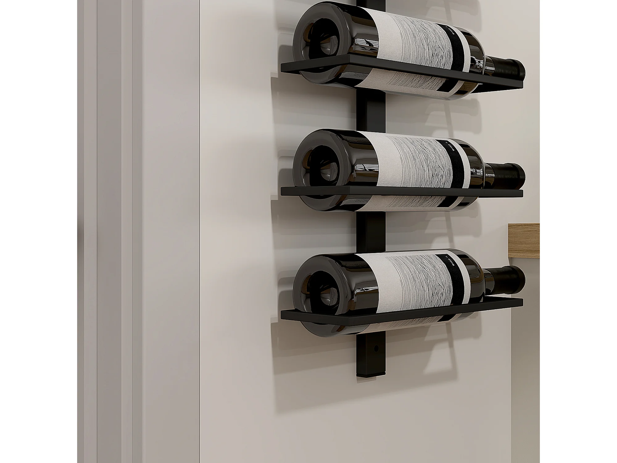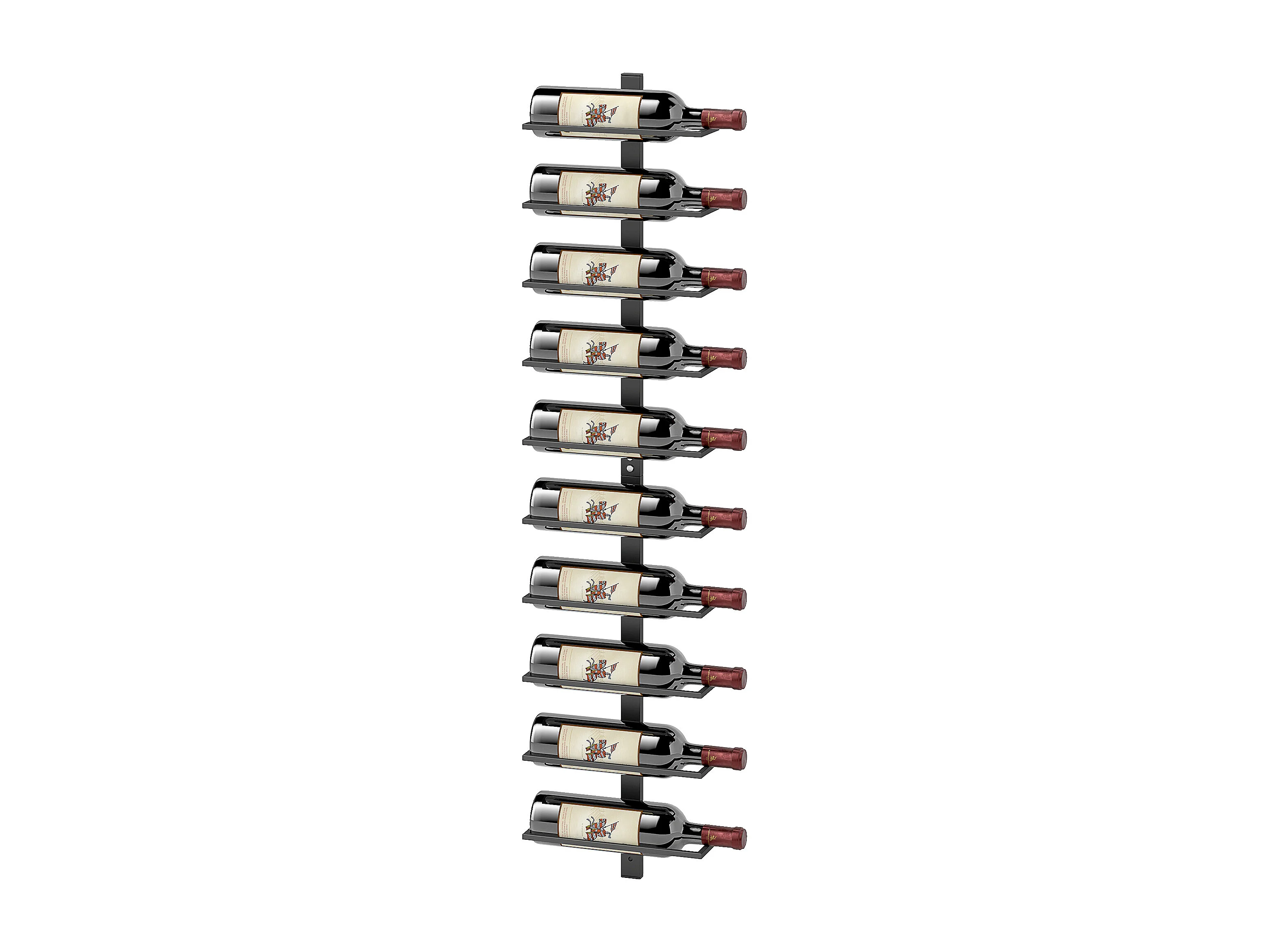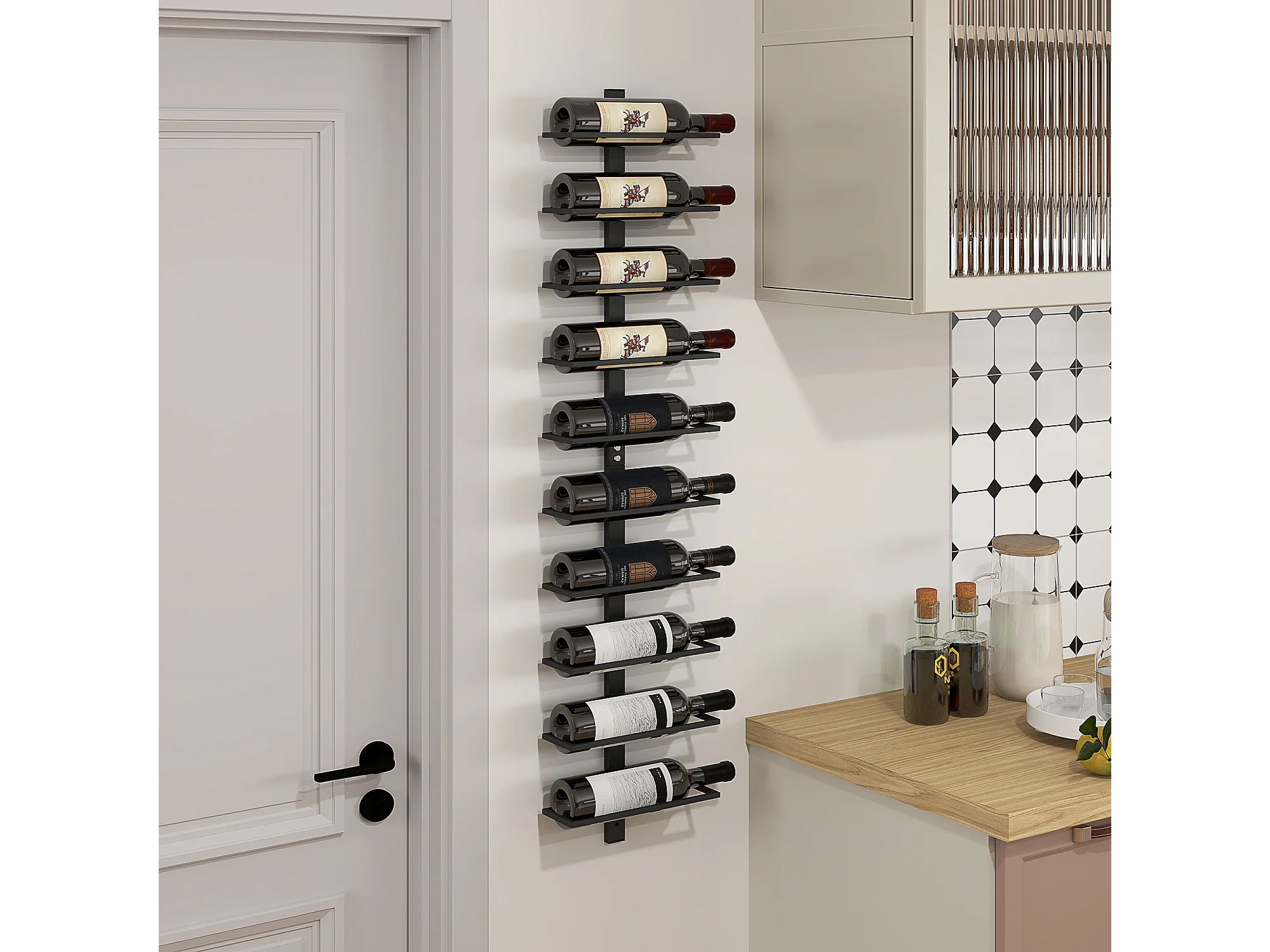 Portabottiglie da parete a 10 ripiani in acciaio 27x10x116 cm nero