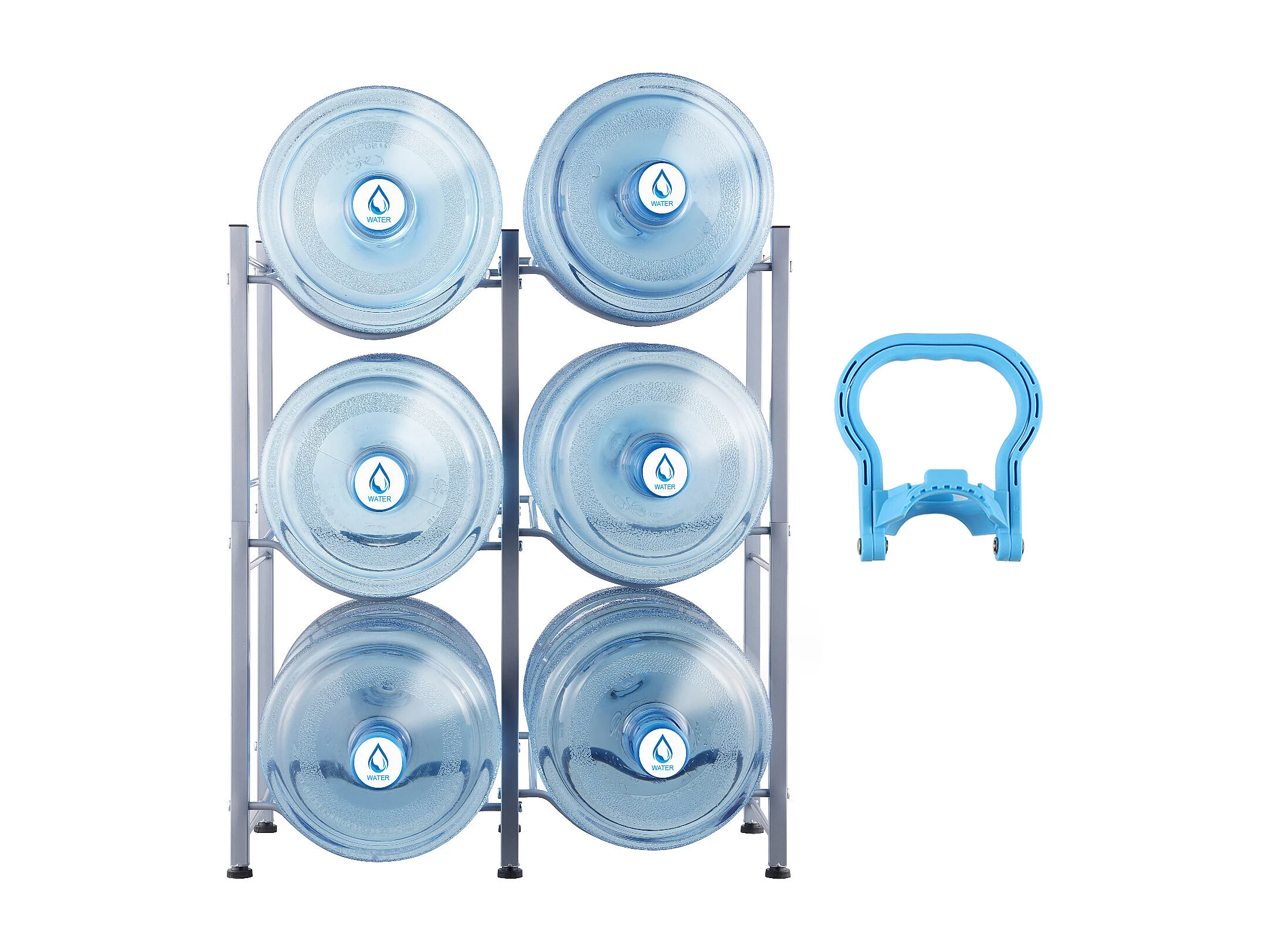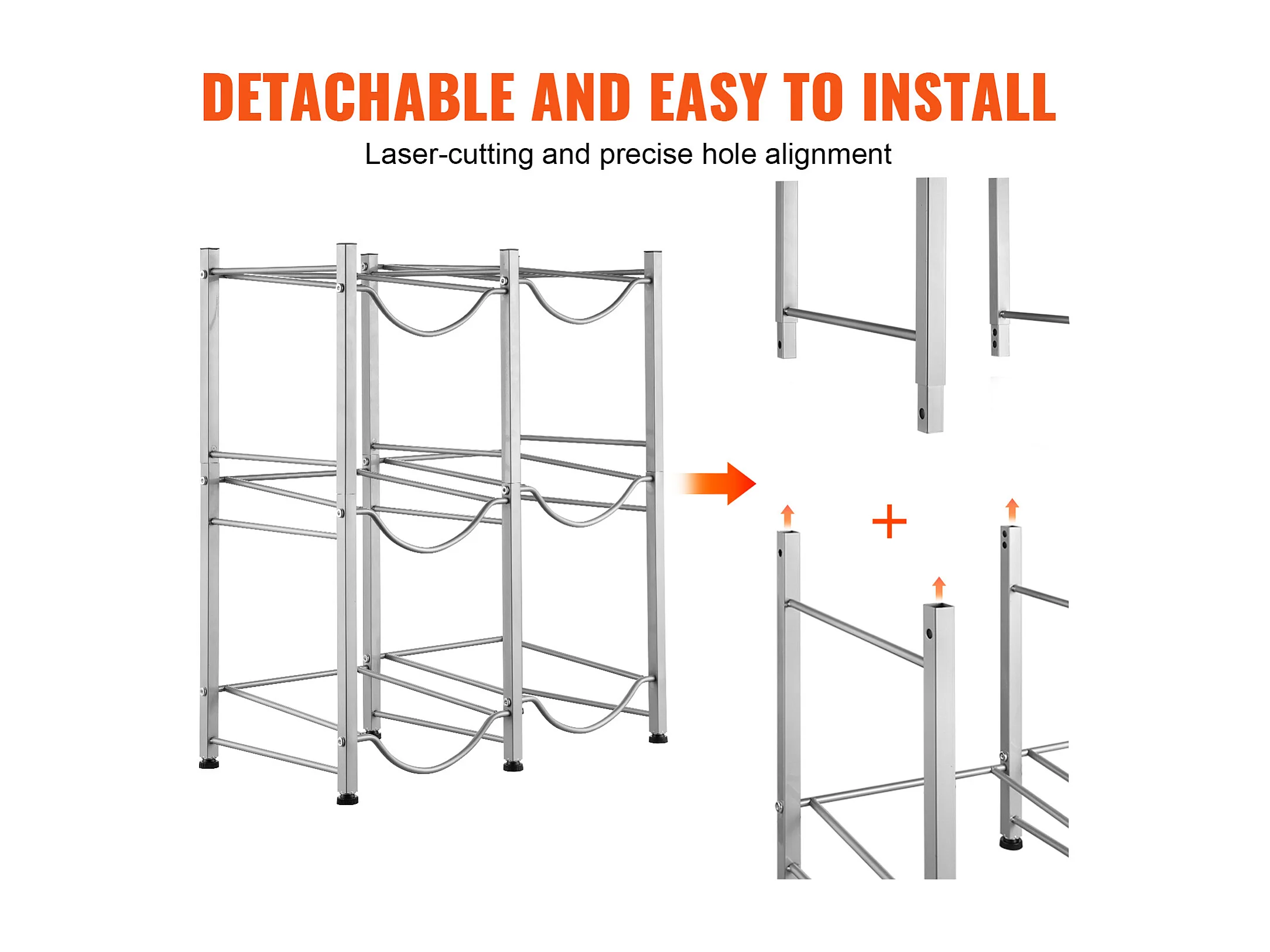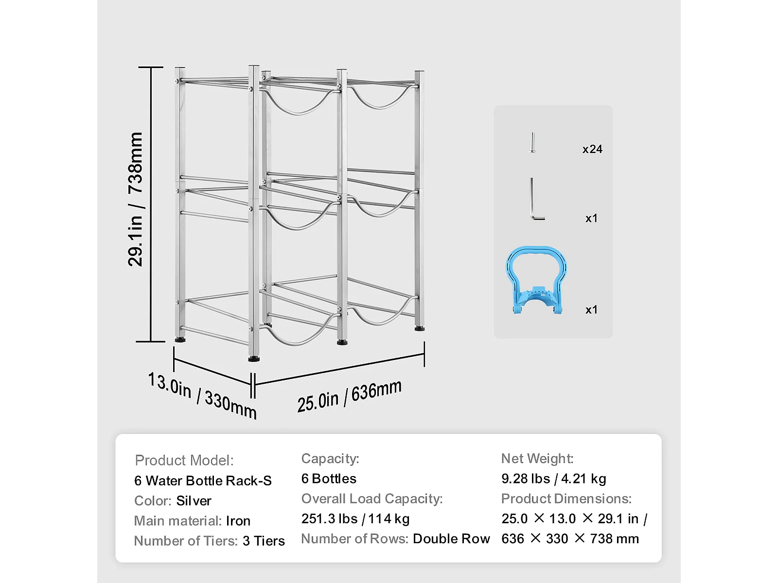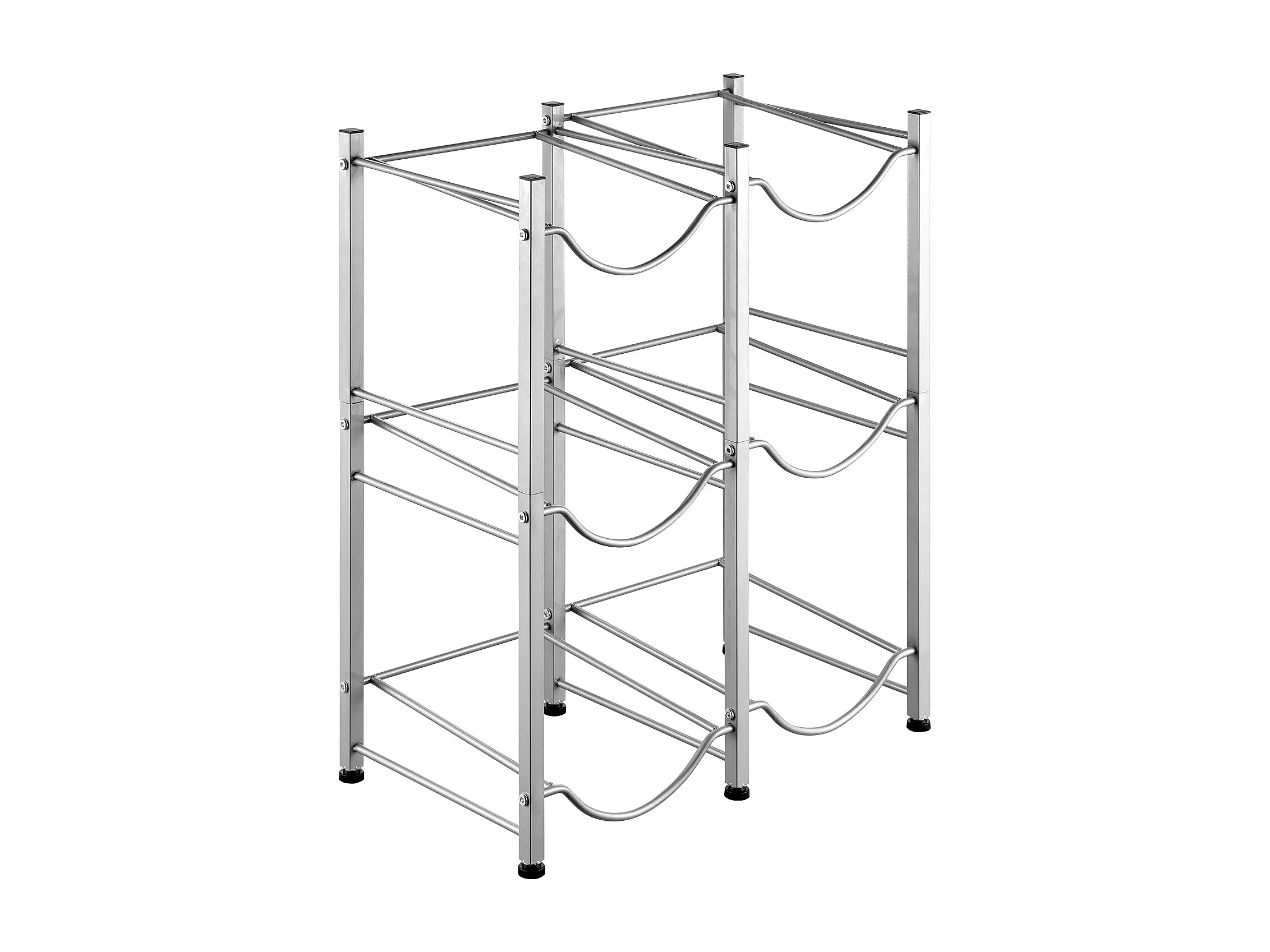 Portabottiglie d'Acqua SucceBuy, 3 Livelli, Supporto per Bottiglie in Doppia Riga per 6 Bottiglie, Argento