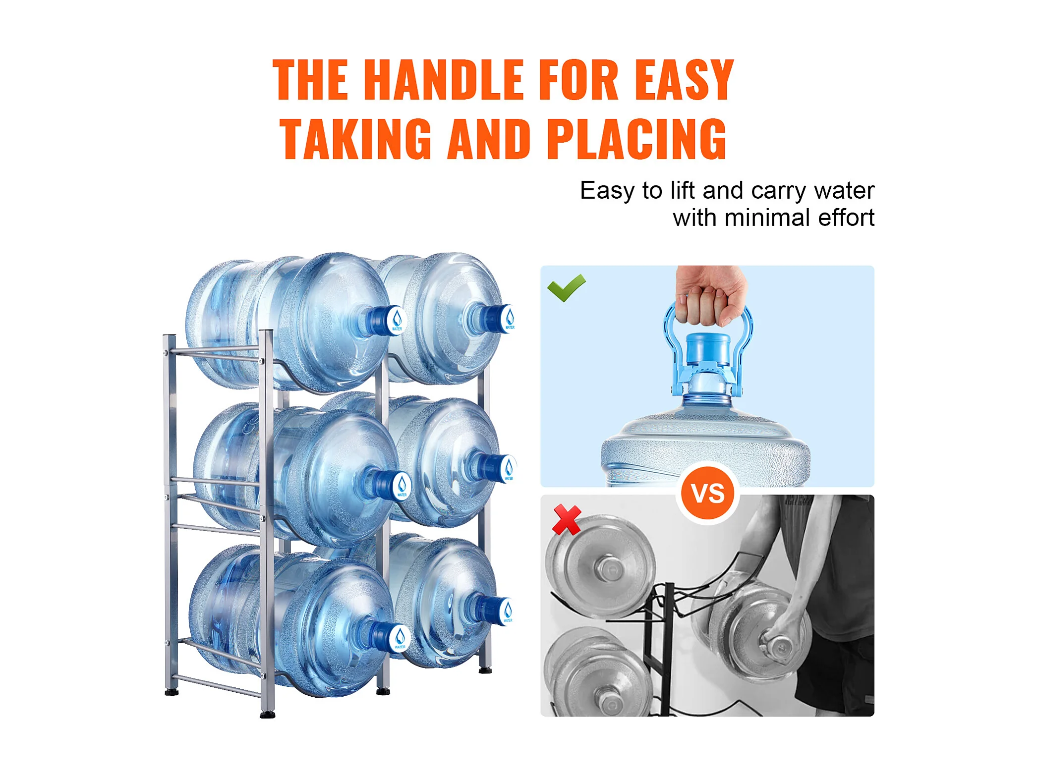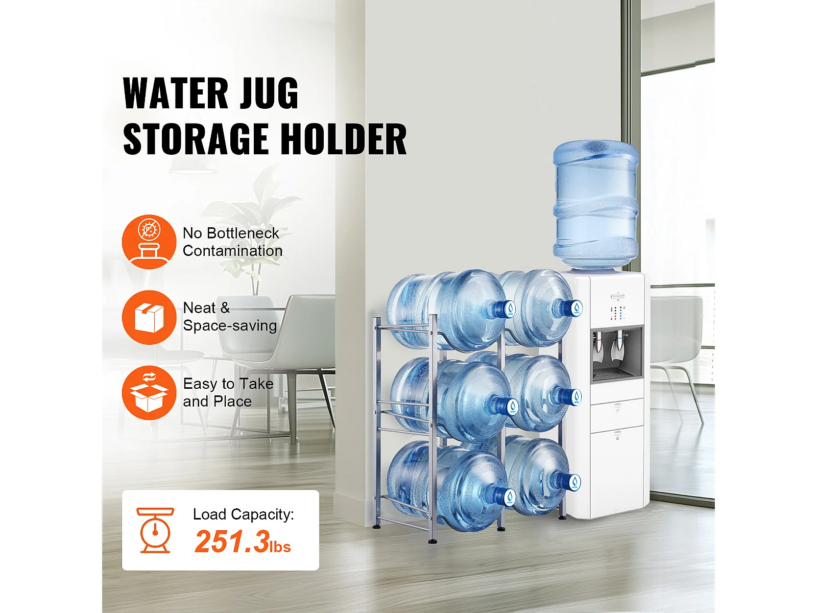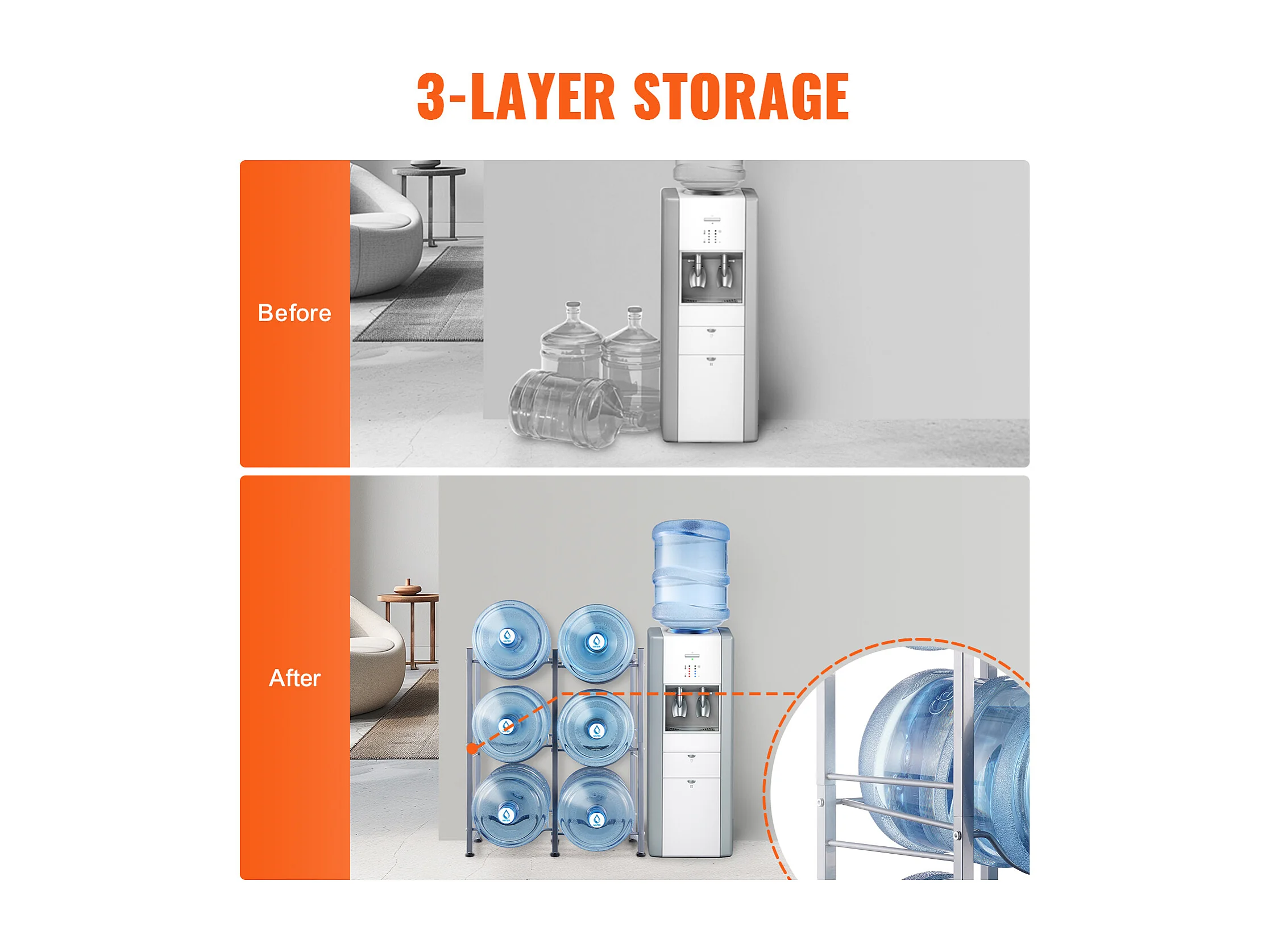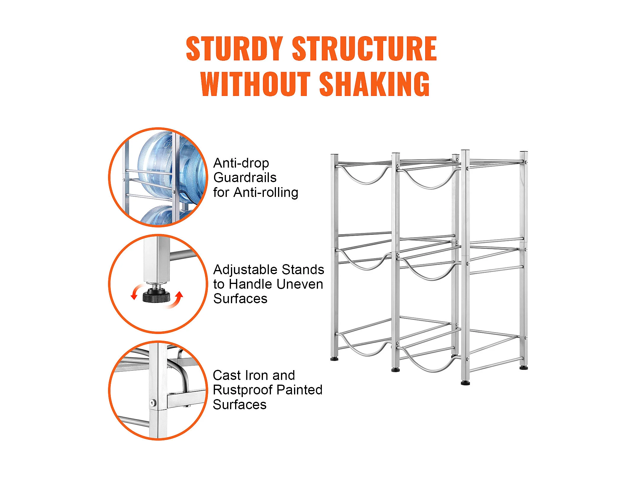 Portabottiglie d'Acqua SucceBuy, 3 Livelli, Supporto per Bottiglie in Doppia Riga per 6 Bottiglie, Argento