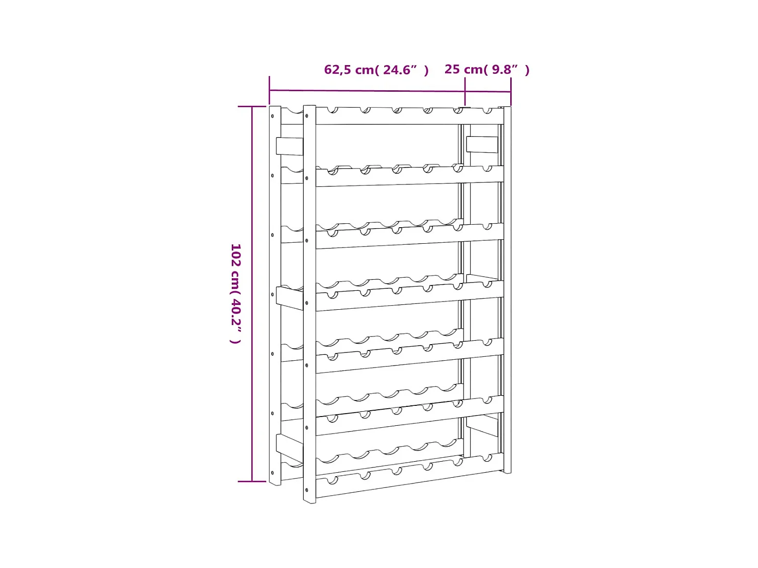 Portabottiglie per 42 bottiglie in legno di pino massiccio marrone