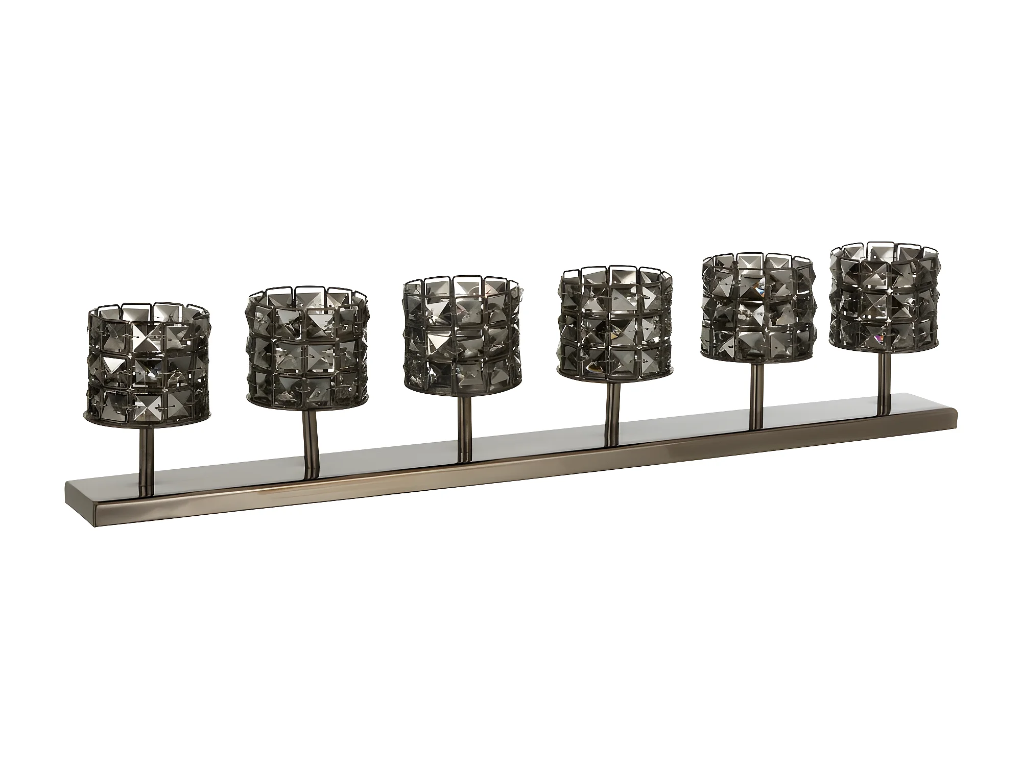 Portacandela a 6 scomparti in alluminio grigio 61x12x8 cm