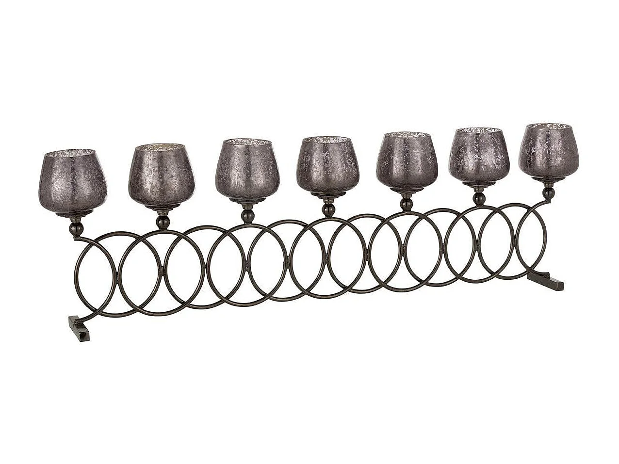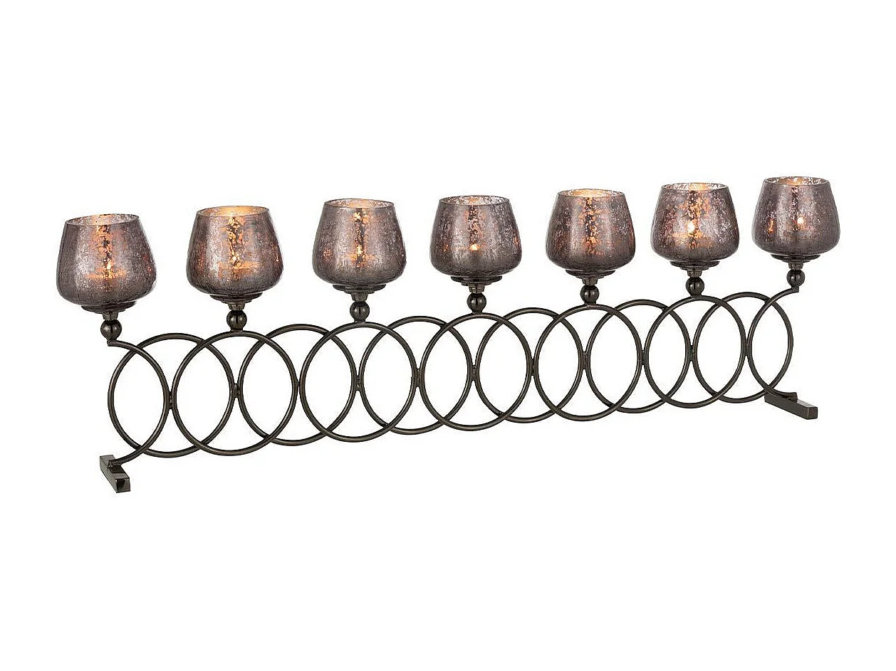 Portacandela a 7 scomparti in alluminio grigio 72x9x22 cm