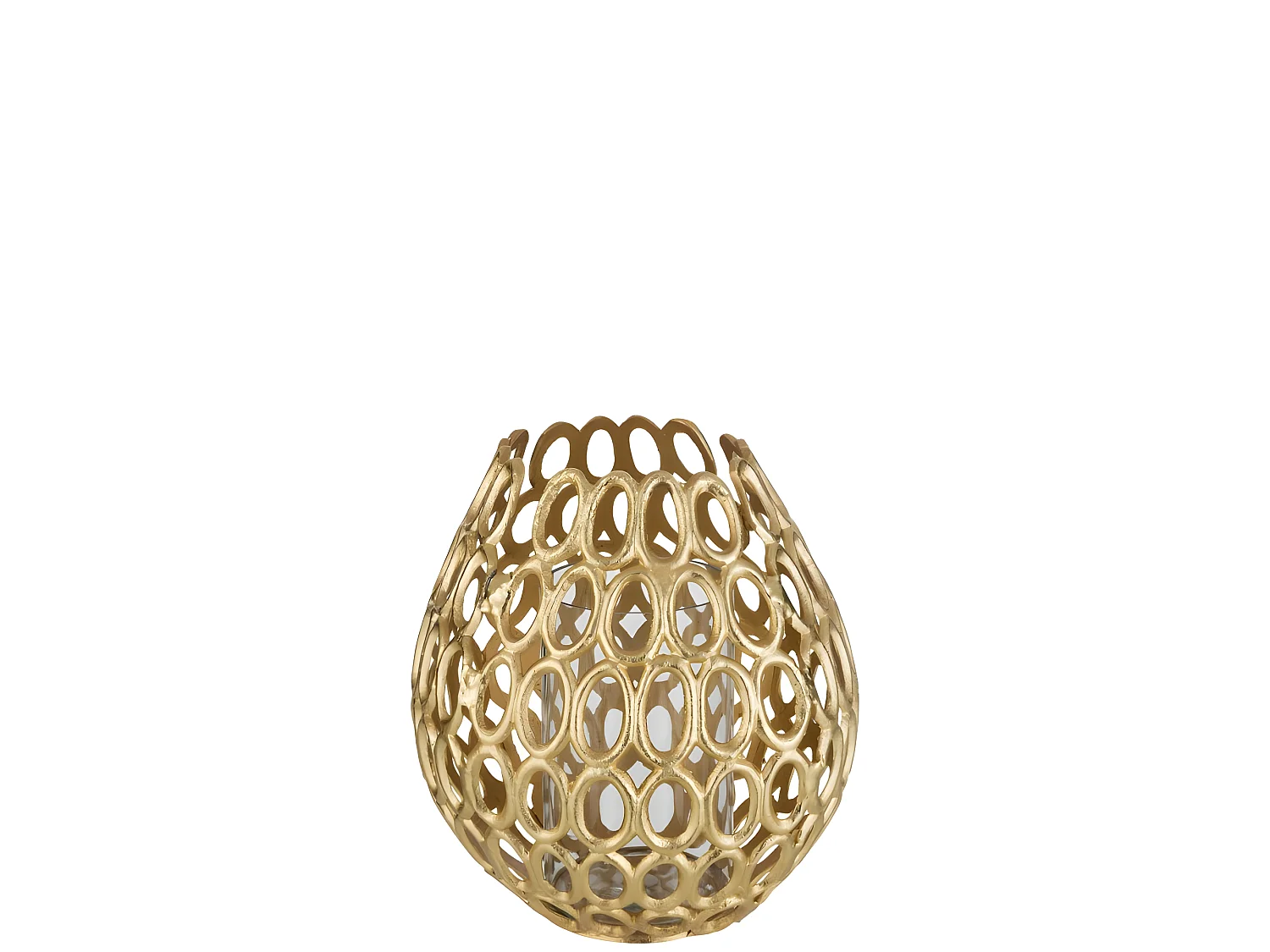 Portacandele in metallo dorato con bicchierino in vetro cm 15x15x25