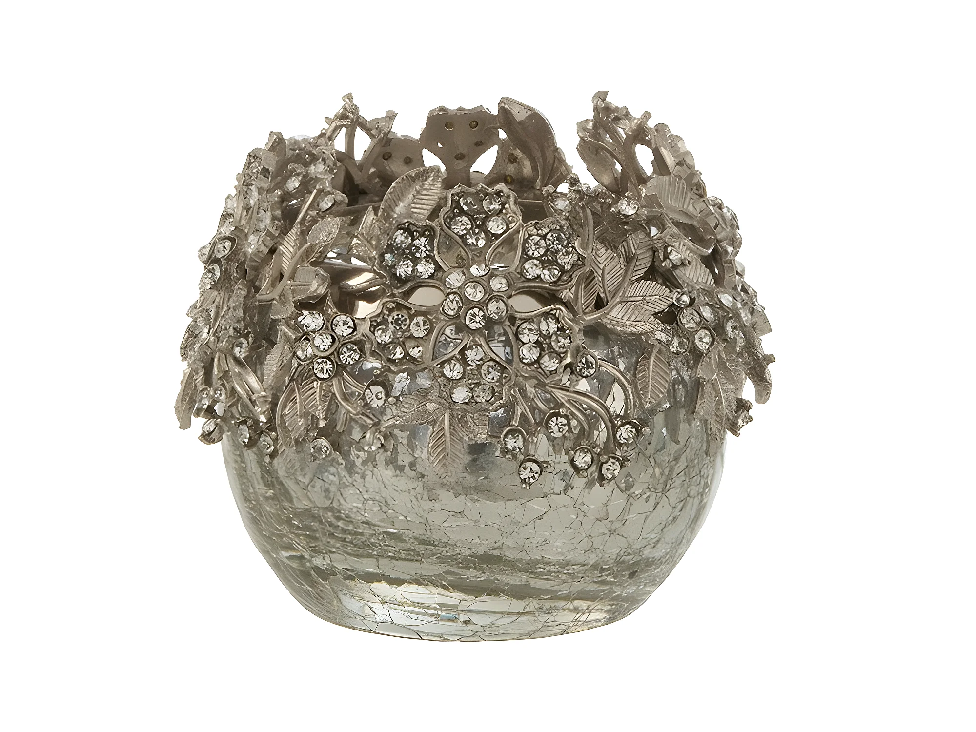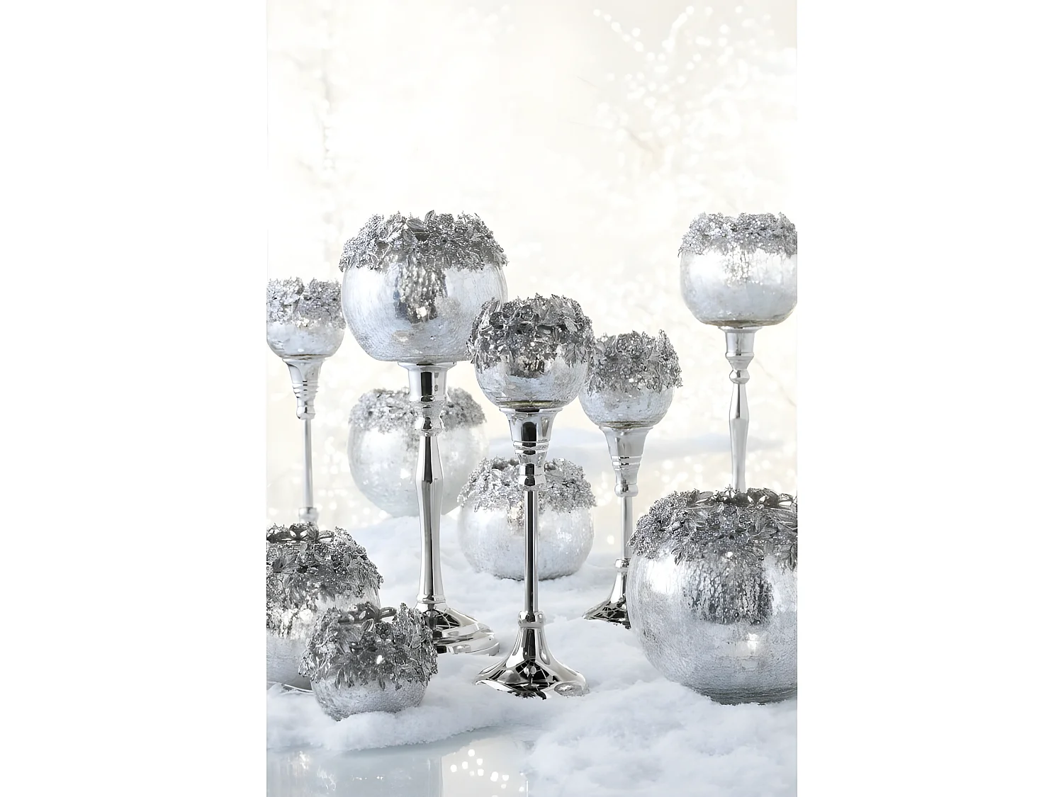 Portacandela in vetro argentato 21.5x21.5x27 cm