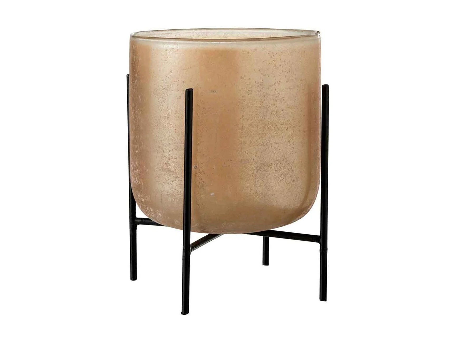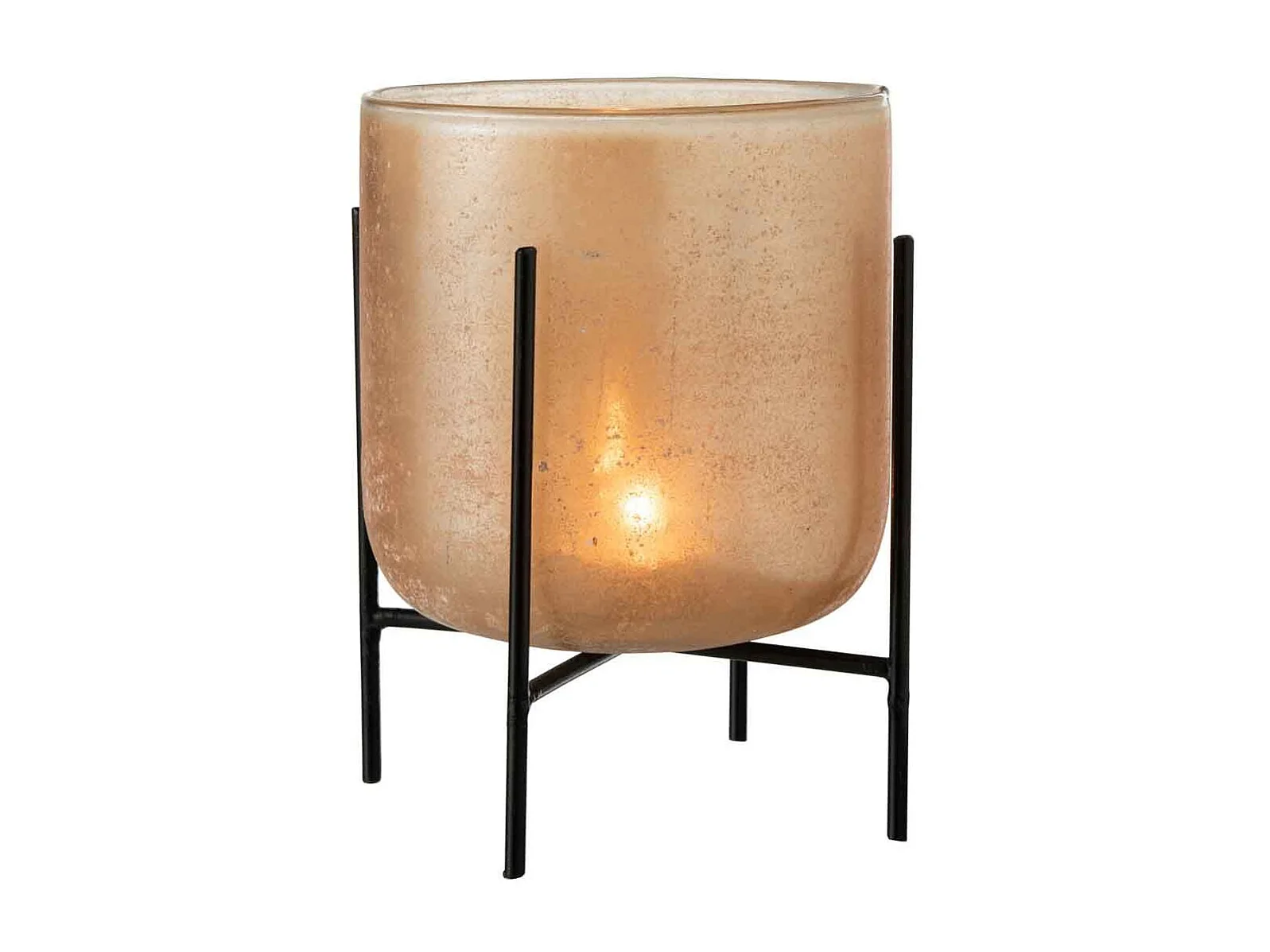 Portacandela rotondo in vetro marrone 17x17x18 cm