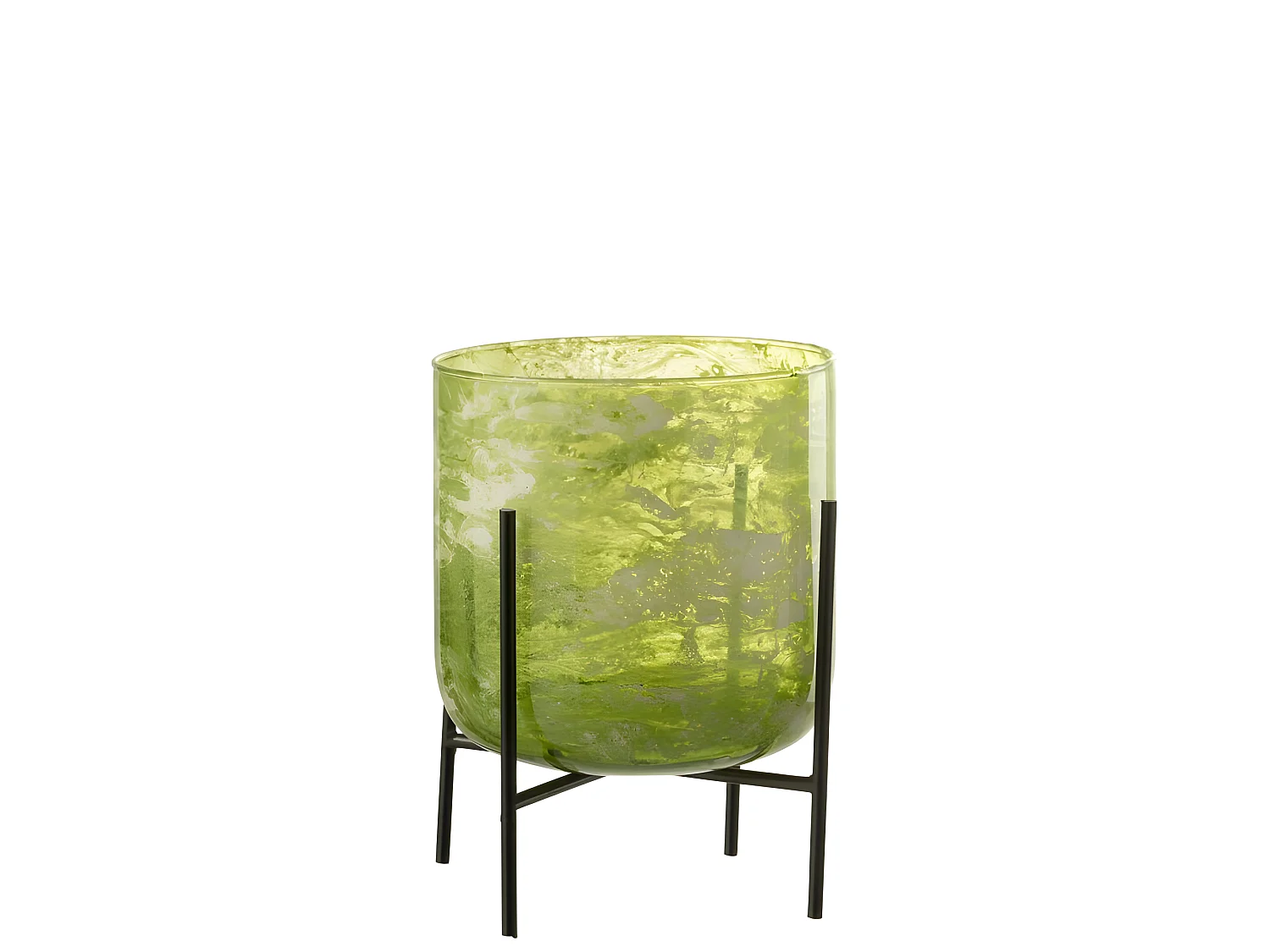 Portacandela in vetro verde 17,5x17,5x26,5cm