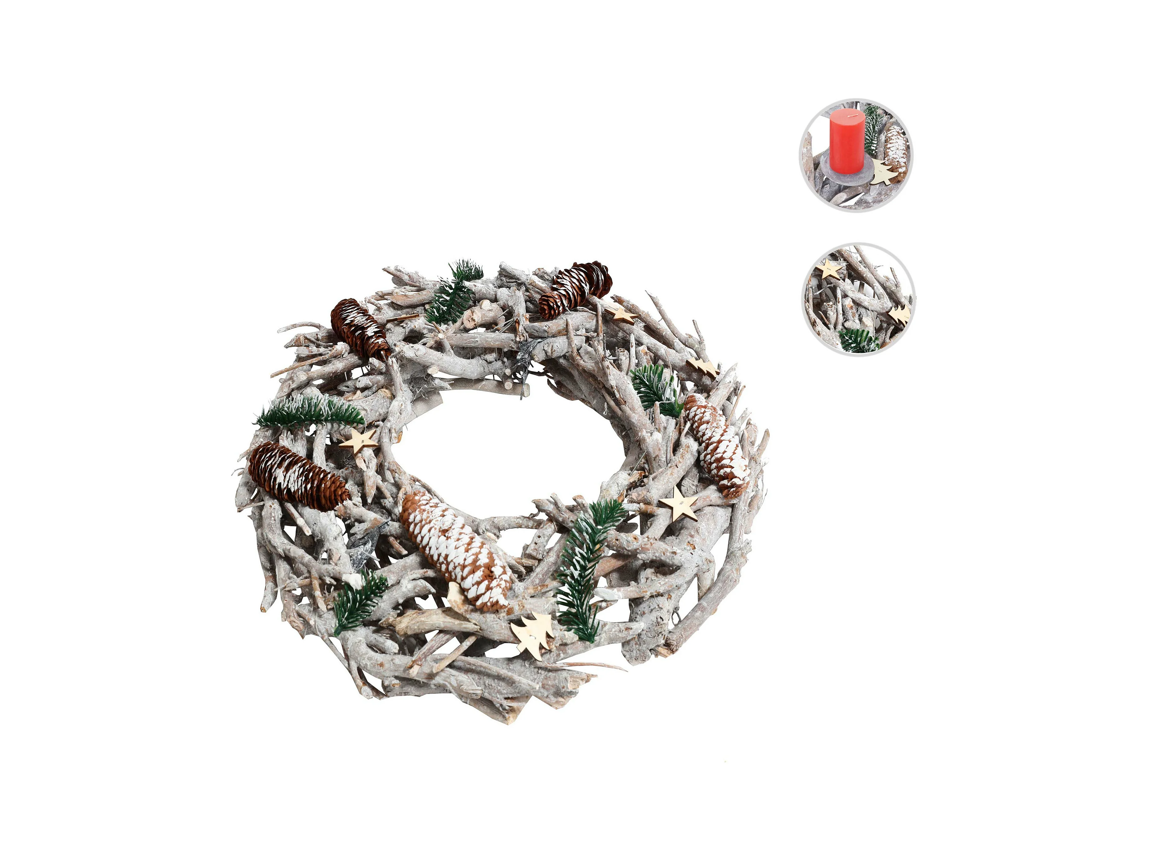 Portacandele portalumini circolare avvento natalizio legno 30x30x9cm